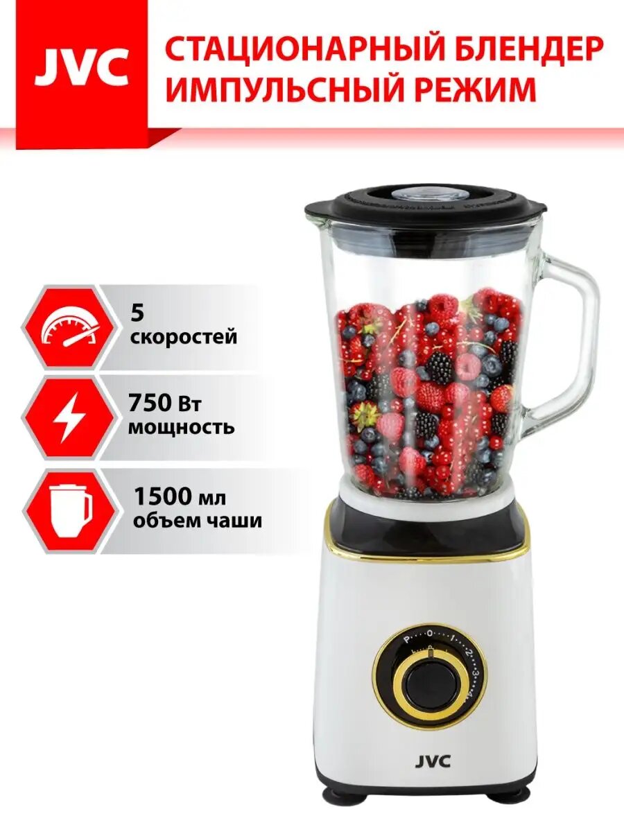 Купить Блендер стационарный JVC JK-SB5225 с импульсным режимом, 5 скоростей, стеклянный кувшин 1,5 л, ножи из нержавеющей стали, 750 Вт