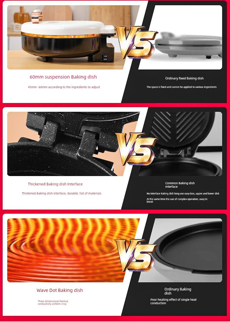 Купить Электрическая блинница с двусторонним нагревом, съемная и моющаяся - Новинка 30, Черный бриллиант, подарочный набор люкс (углубленная 4.5 см)