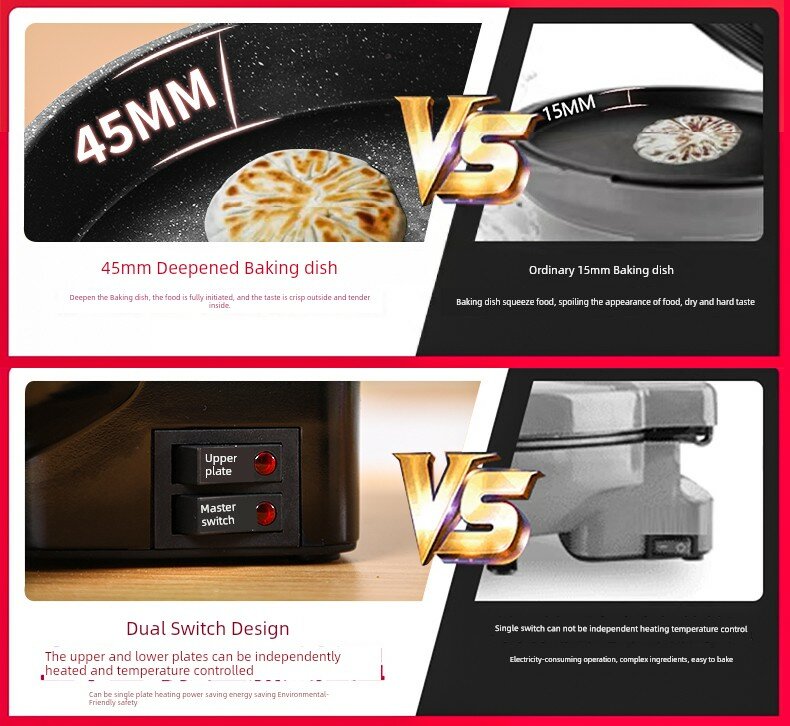 Электрическая блинница с двусторонним нагревом, съемная и моющаяся - Новинка 30, Черный бриллиант, подарочный набор люкс (углубленная 4.5 см)