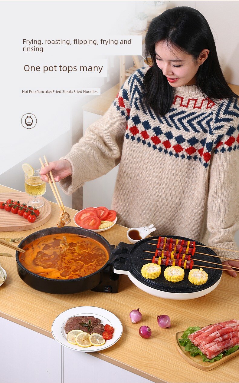 Купить Электрическая блинница с двусторонним нагревом, съемная и моющаяся - Новинка 30, Жемчужный, подарочный набор люкс (углубленная 4.5 см)