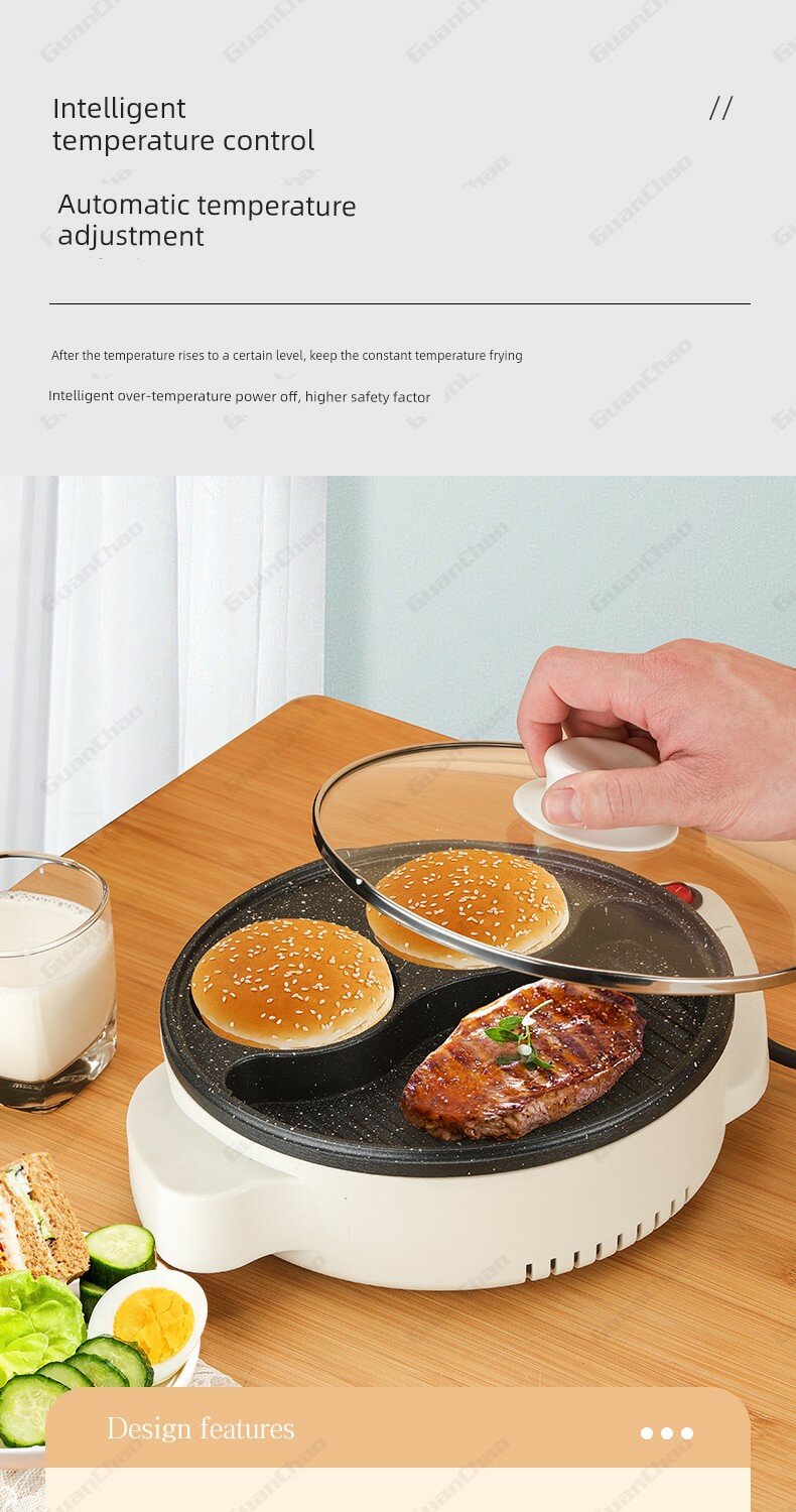 Купить Электрическая сковорода для завтрака с антипригарным покрытием и крышкой