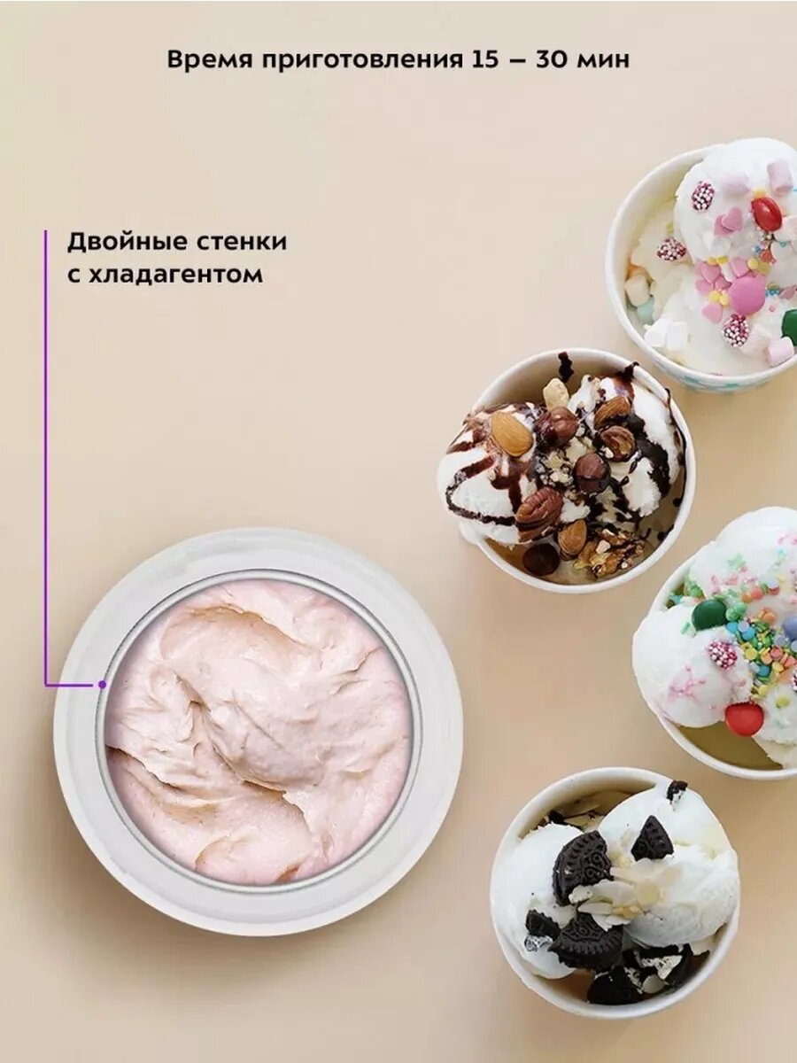 Мороженица Kitfort KT-1830, мощность 12Вт, с дисплеем и таймером, чаша на 1,5 л, цвет пудровый
