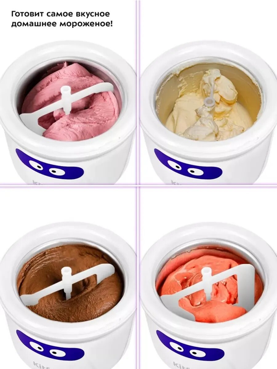 Мороженица Kitfort KT-1833, мощность 12Вт, с дисплеем и таймером, чаша на 1.5л, бело-синня интересное: