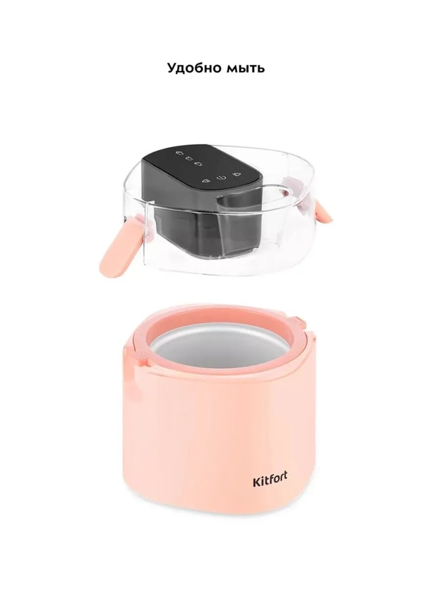 Мороженица Kitfort KT-1830, мощность 12Вт, с дисплеем и таймером, чаша на 1,5 л, цвет пудровый интересное: