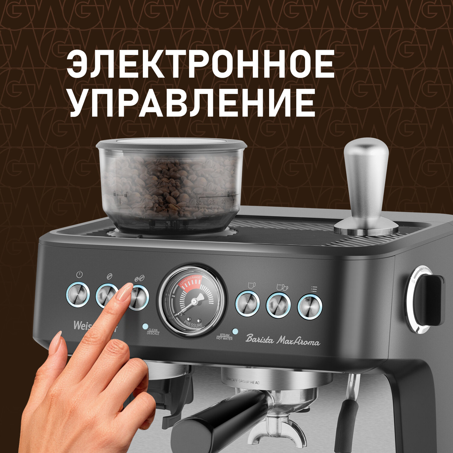 Кофейная станция Weissgauff WCM 685 Barista MaxAroma Pro Inox, Давление 20 бар, Капучинатор, Манометр интересное: