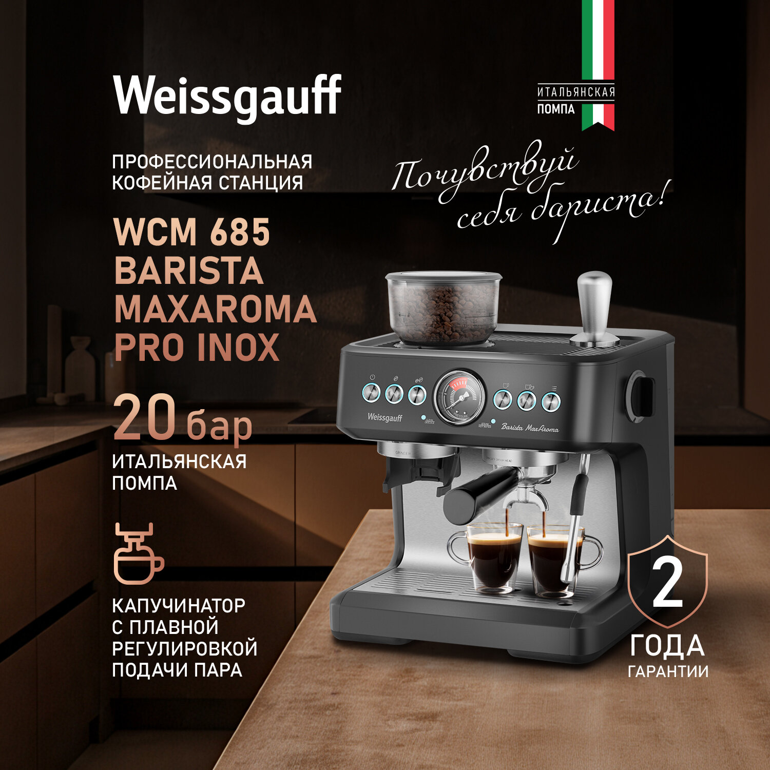 Купить Кофейная станция Weissgauff WCM 685 Barista MaxAroma Pro Inox, Давление 20 бар, Капучинатор, Манометр