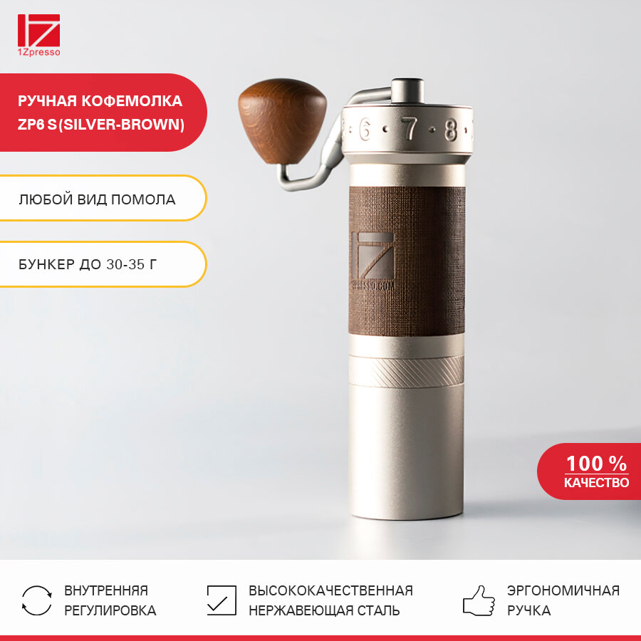 СохранитьКофемолка ручная жерновая 1Zpresso ZP6 S (Silver-Brown). Кофемолка механическая. Мельница для кофе интересное: