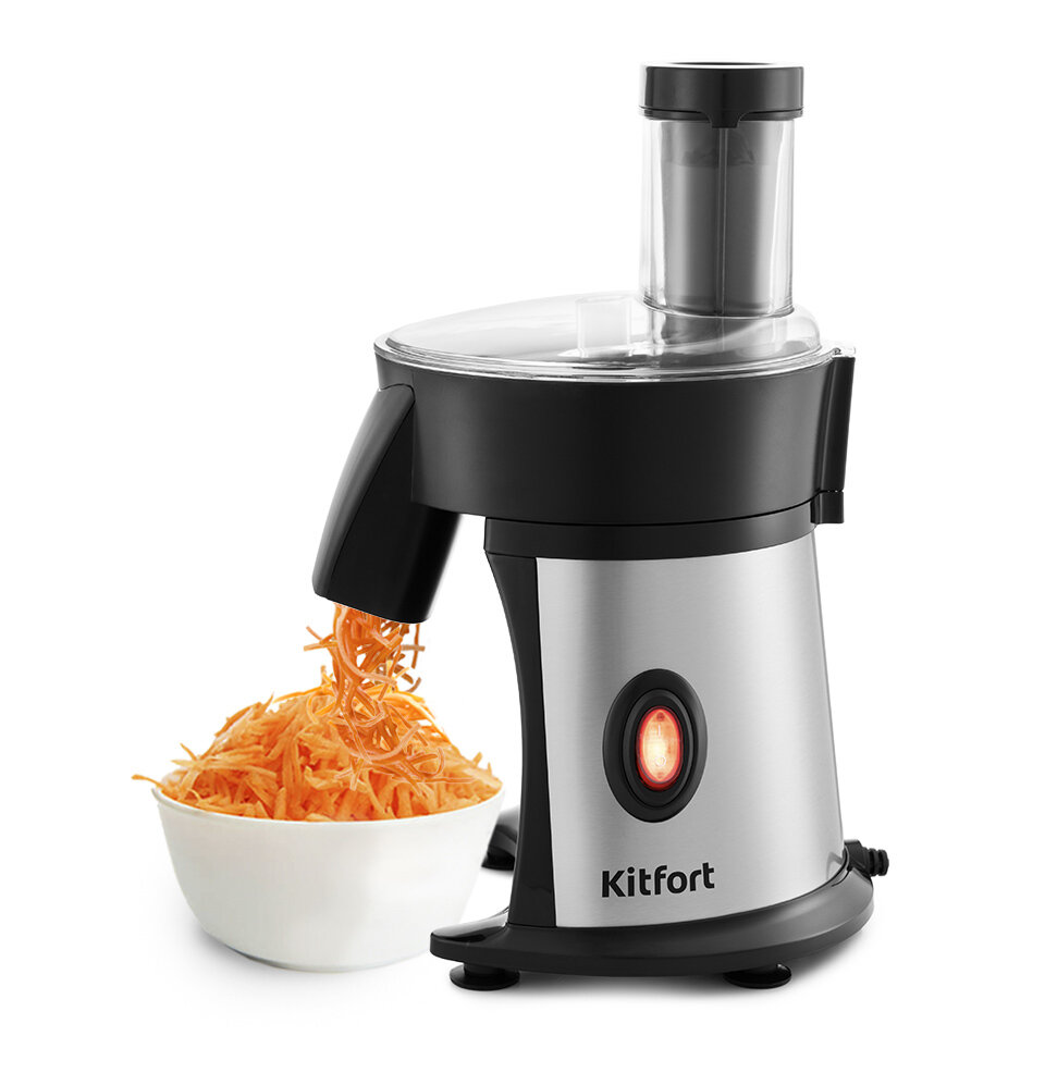 Купить Тёрка электрическая Kitfort КТ-1393, 350 Вт, 820 об./мин, 3 насадки, полностью разборная, цвет черный/серебристый