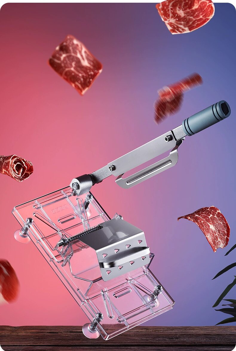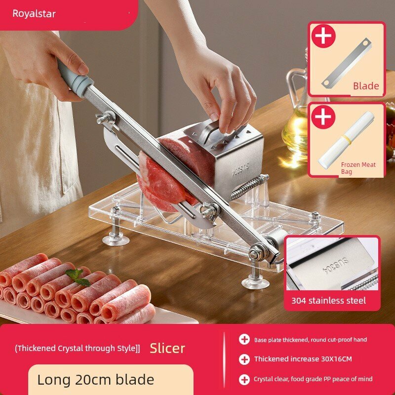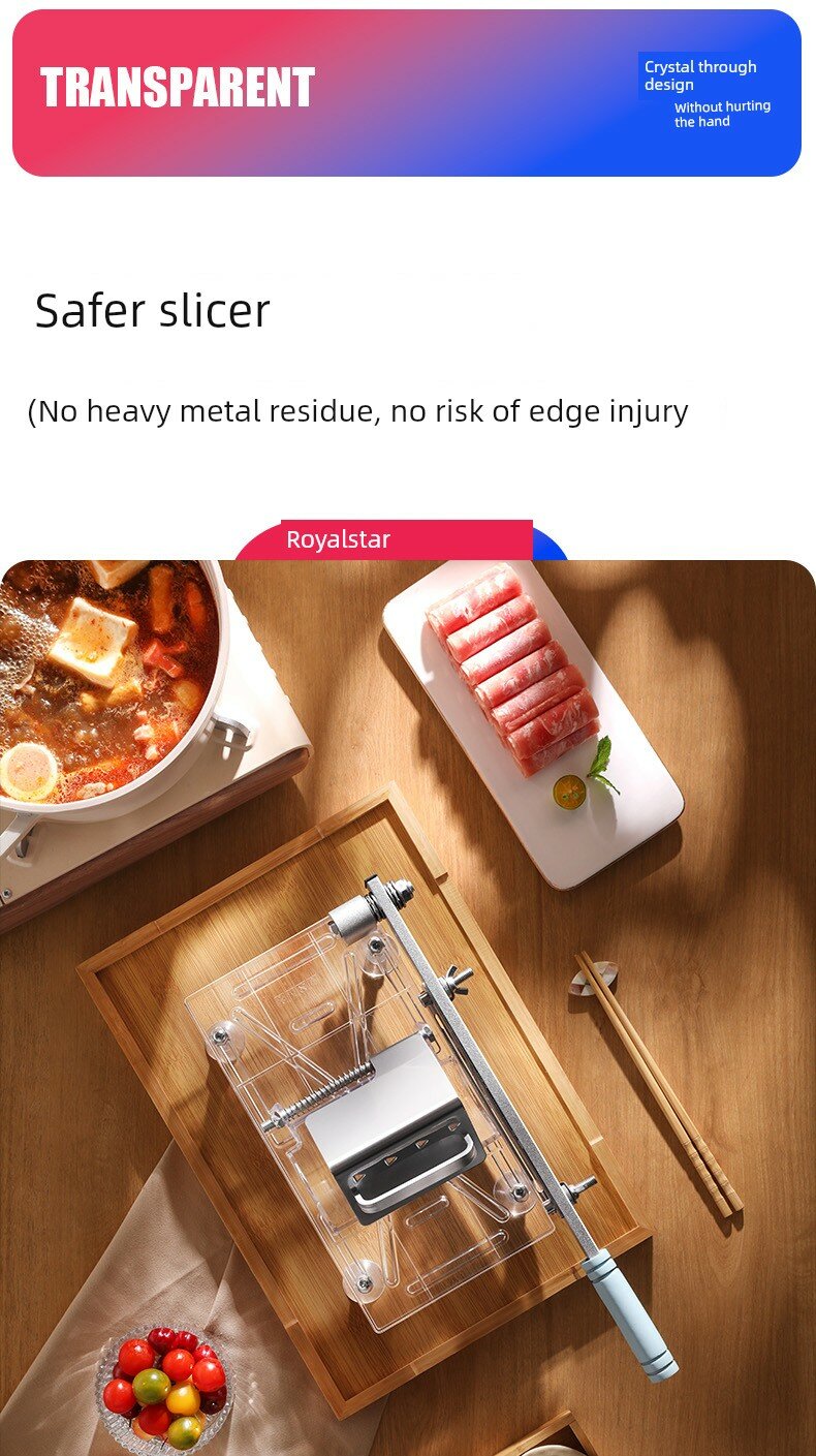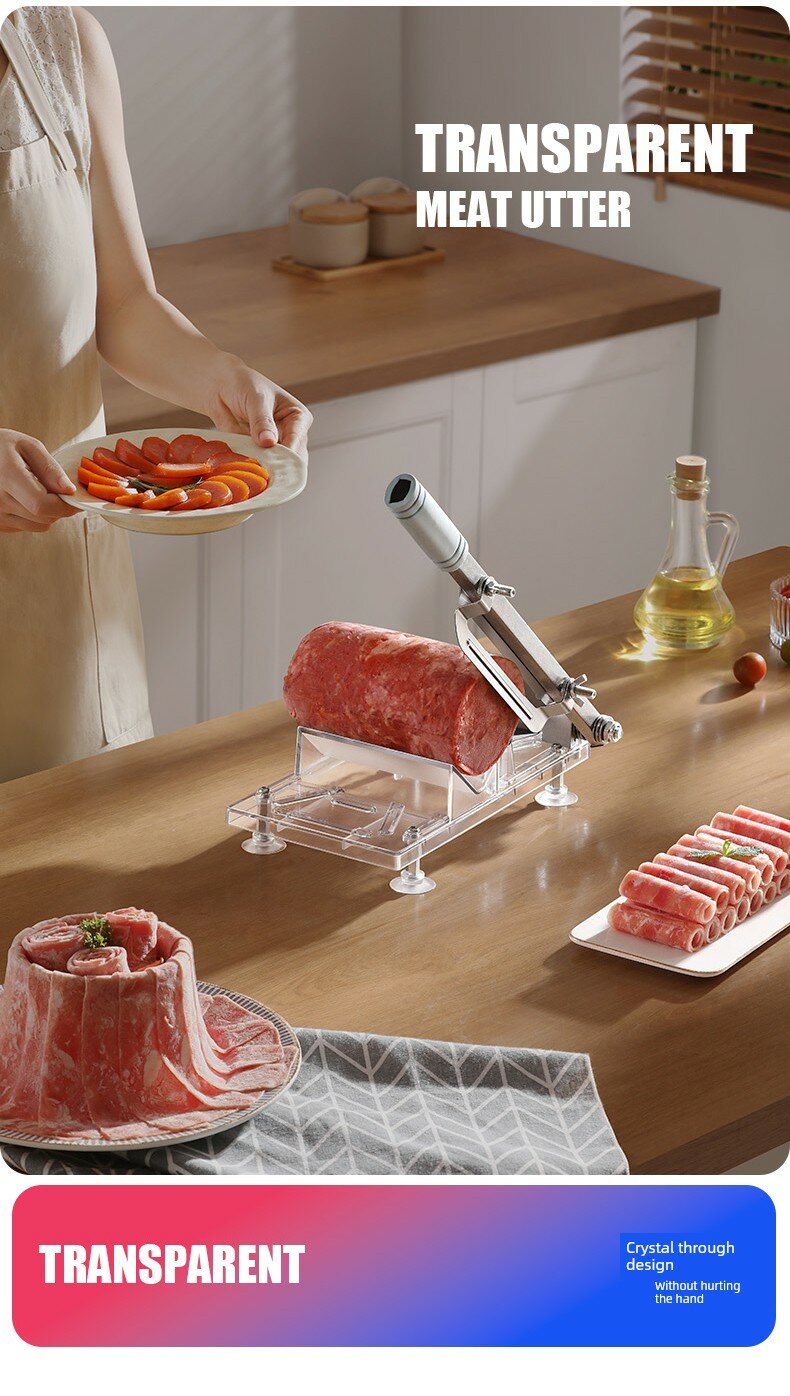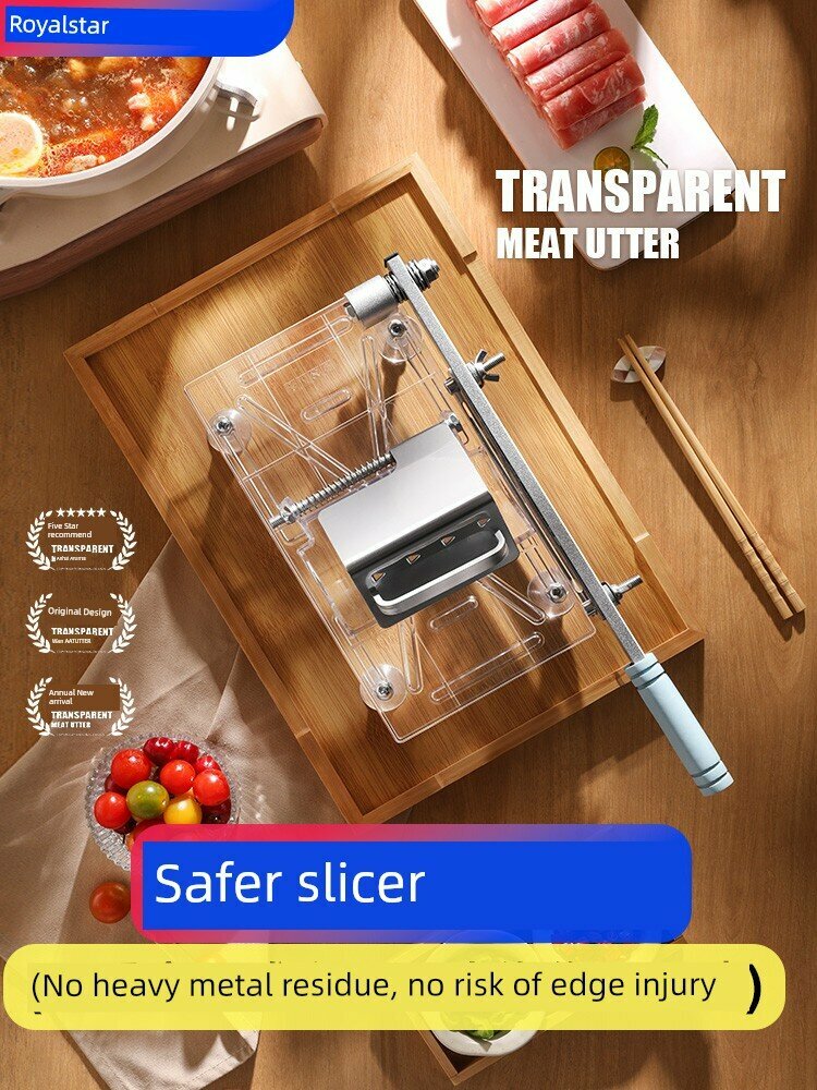 Ручной слайсер для замороженного мяса из нержавеющей стали 304 с кристально прозрачным корпусом и оригинальным лезвием
