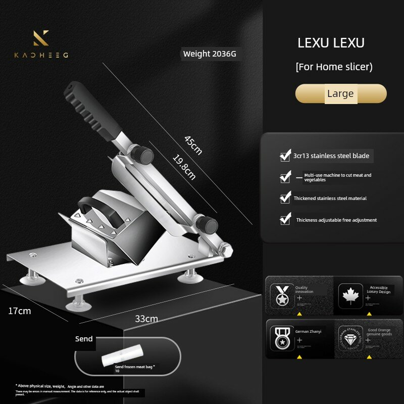 Утолщенный слайсер из нержавеющей стали 304 с регулировкой толщины и автоматической подачей + 2 Запасных лезвия + 10 пакетов для заморозки
