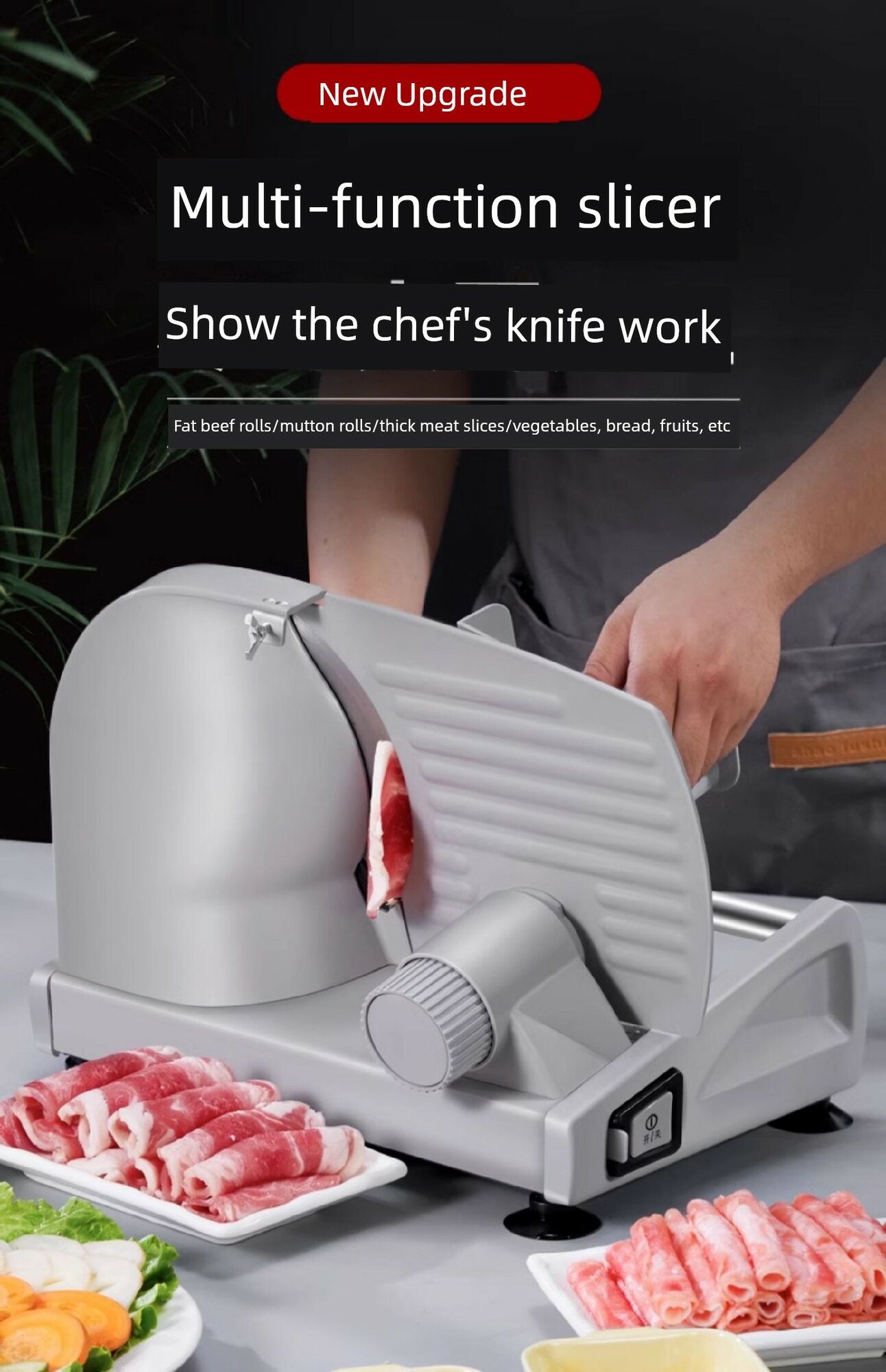 Ниже Вы можете прочитать отзывы на Электрический слайсер для мяса с двумя лезвиями для нарезки рулетов из баранины (регулировка 1-15 мм), ознакомится с подробными характеристиками, посмотреть интересные обзоры и фотографии на Электрический слайсер для мяса с двумя лезвиями для нарезки рулетов из баранины (регулировка 1-15 мм).