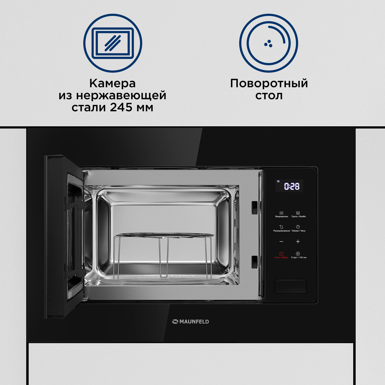 Микроволновая печь встраиваемая MAUNFELD MBMO820SGB10 интересное: