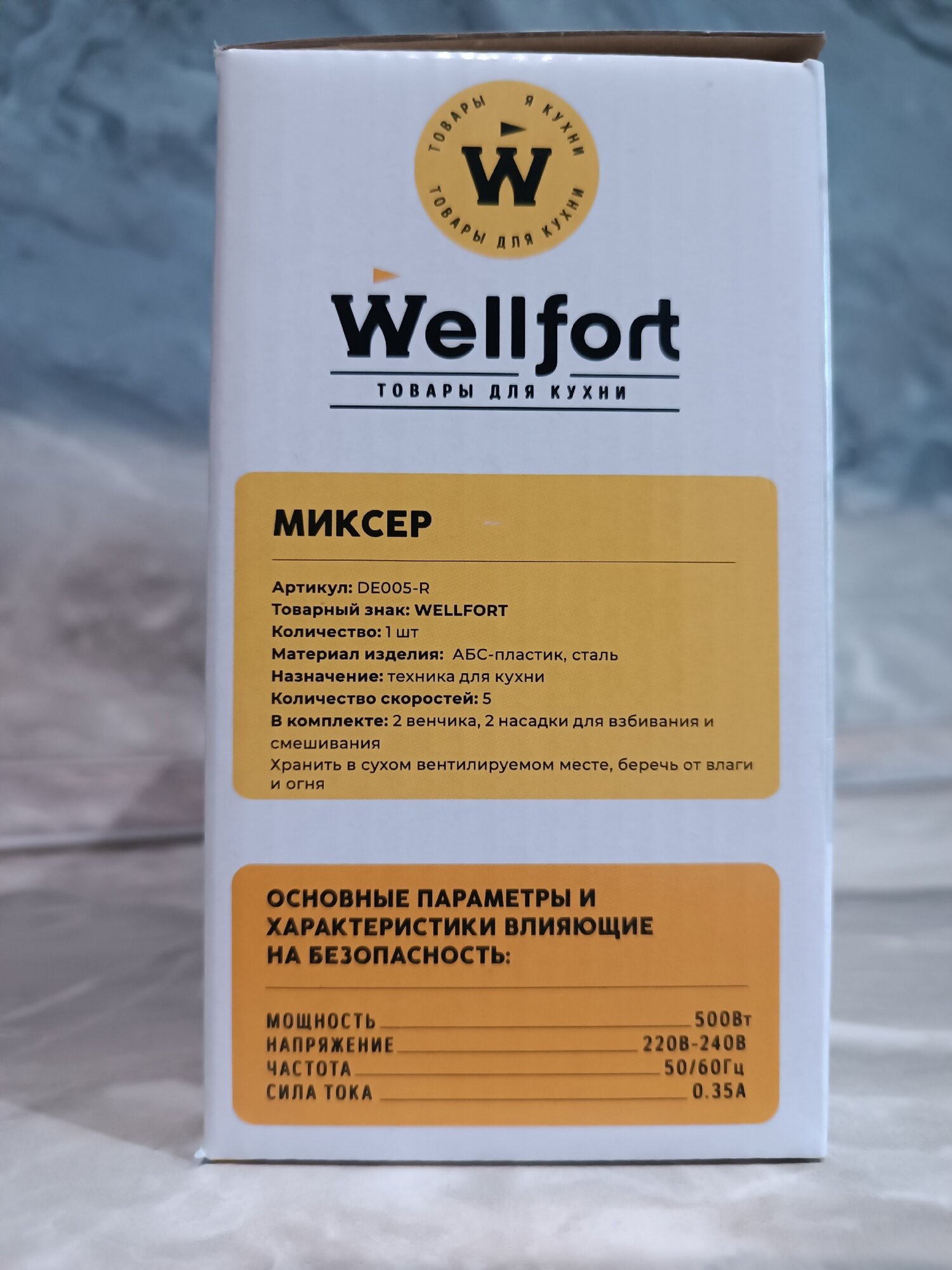 Миксер Wellfort 500 Вт DE005-R, 2 насадки для смешивания и 2 венчика интересное:
