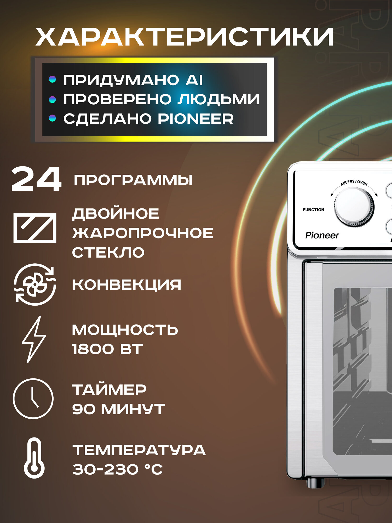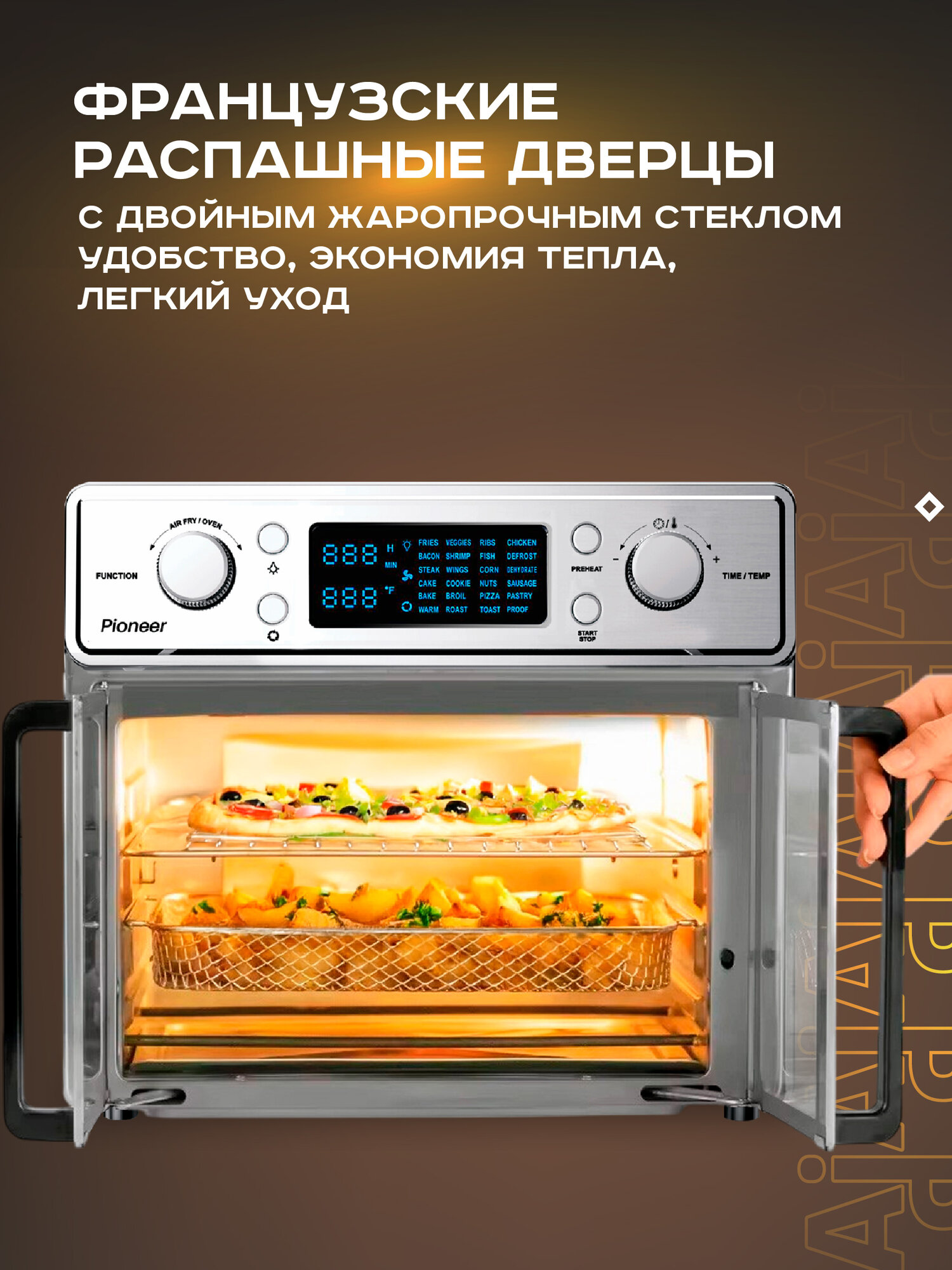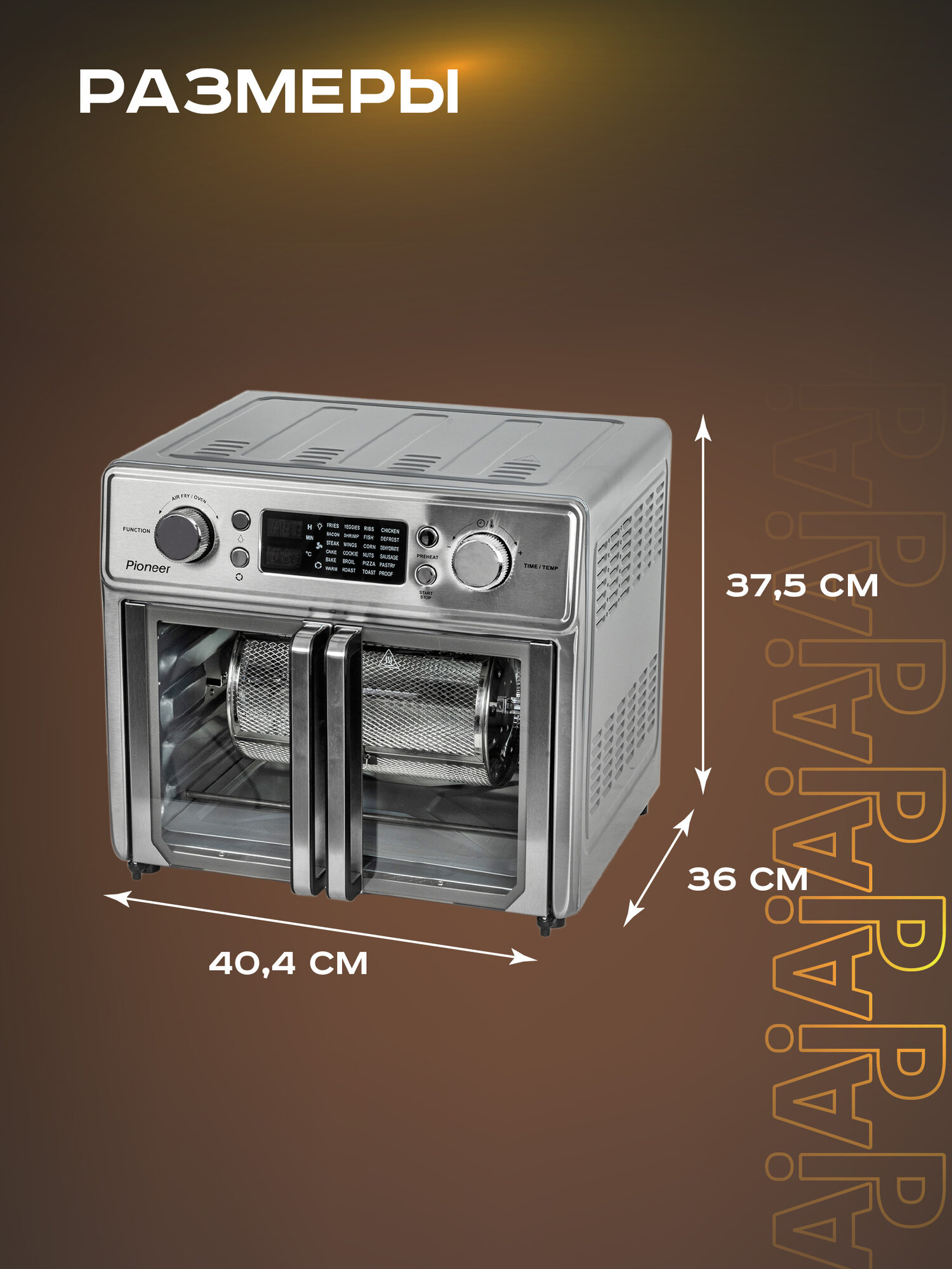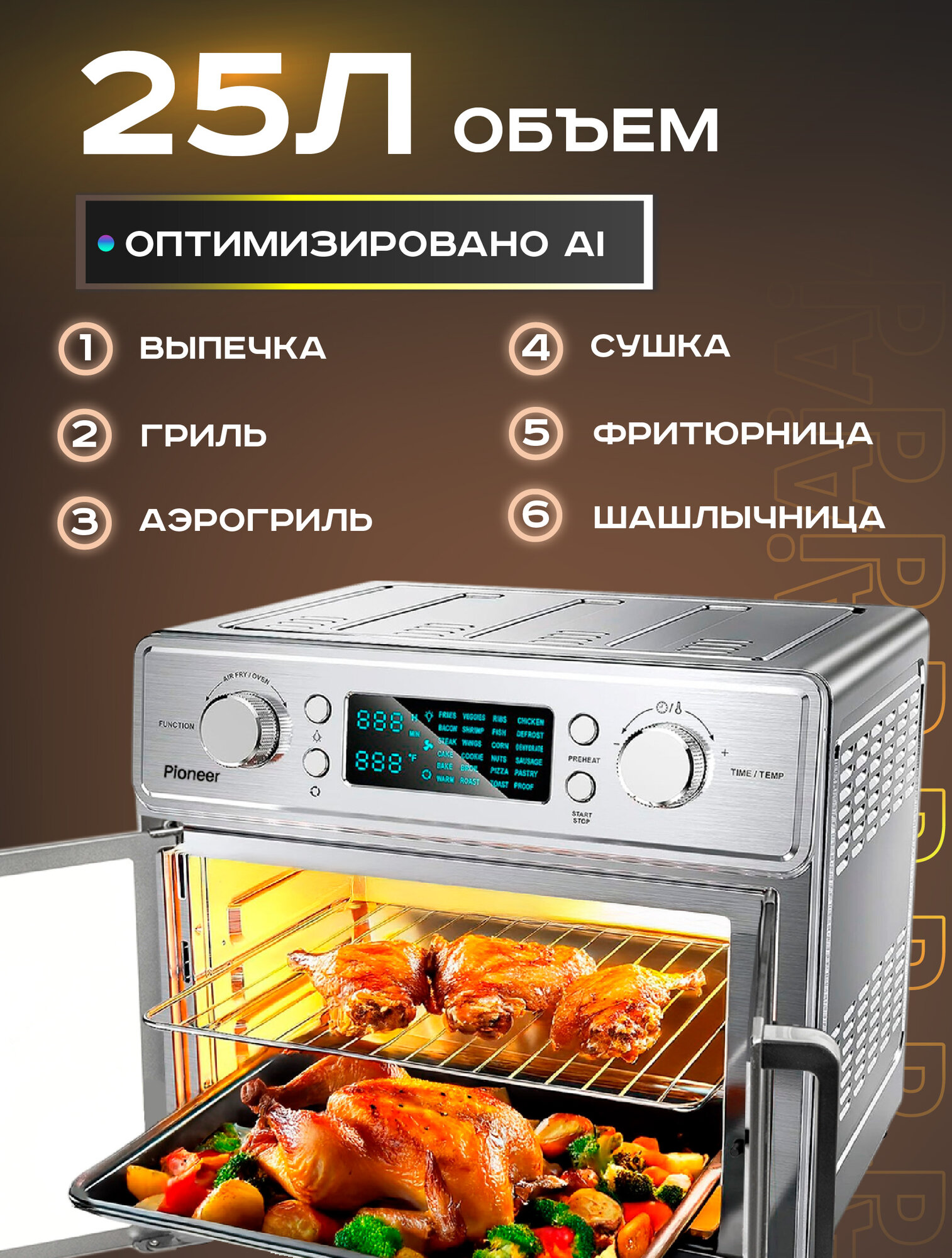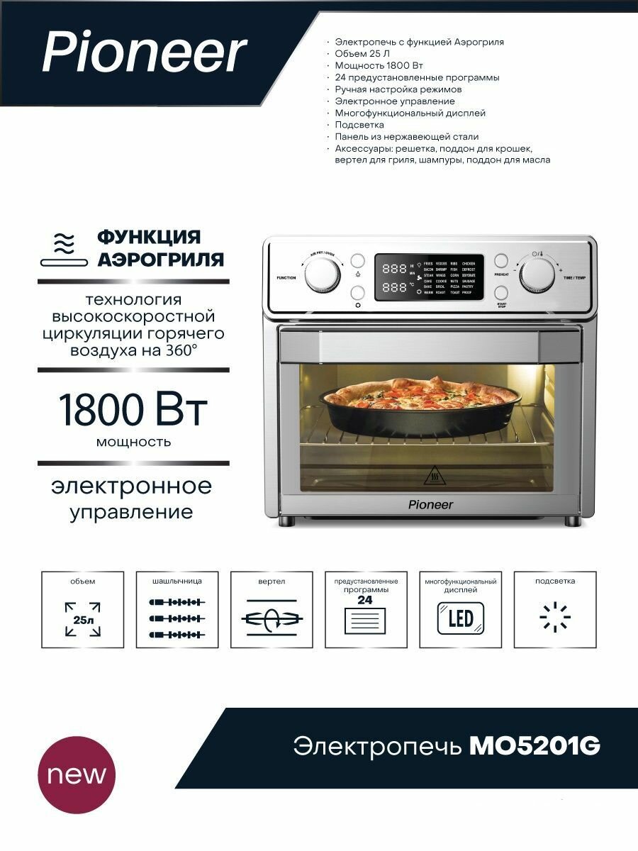 Электропечь Pioneer MO5202G с функцией Аэрогриля и Шашлычницы интересное: