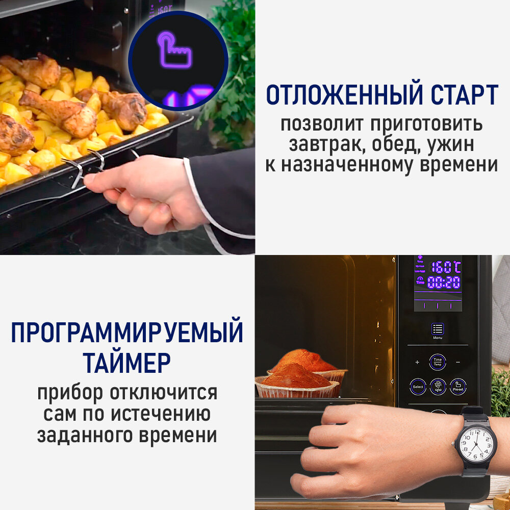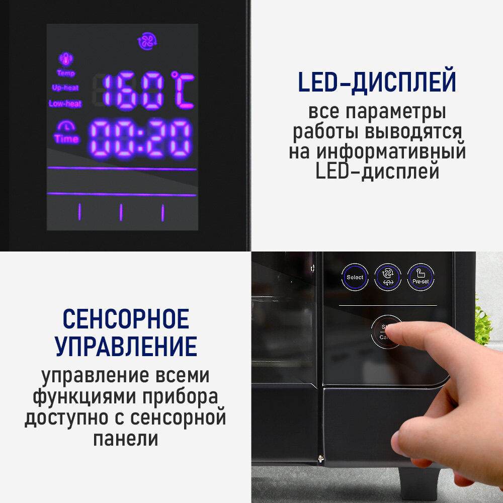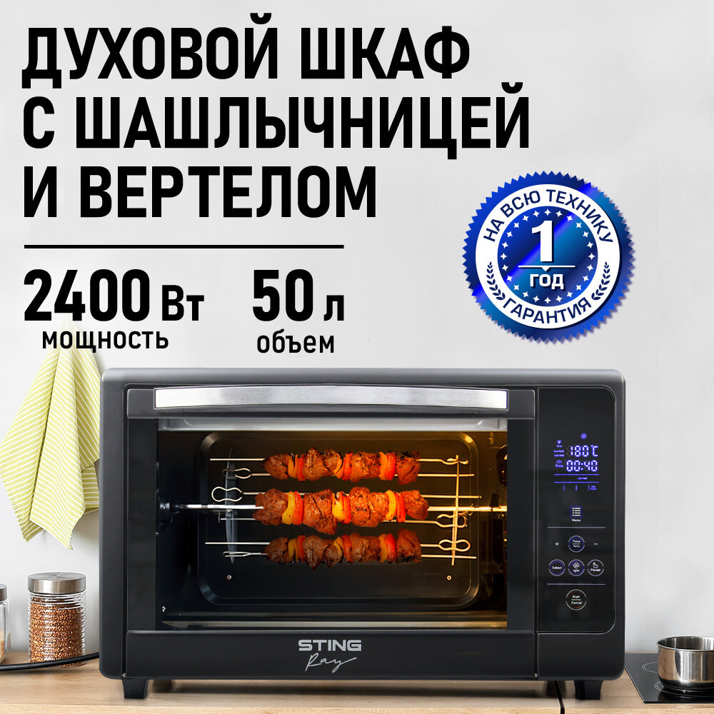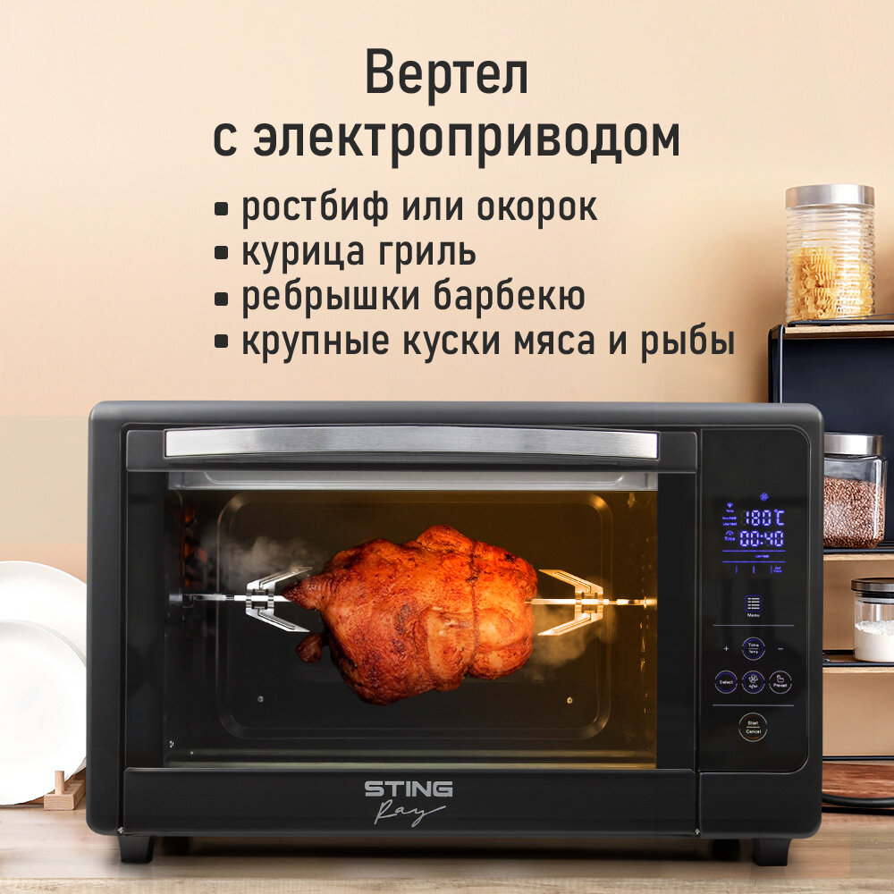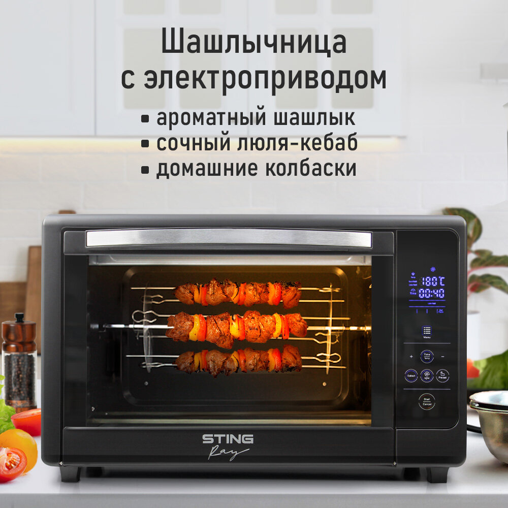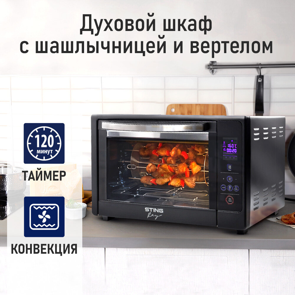 Духовка духовой шкаф мини-печь STINGRAY ST-EO109A 50 литров сенсор конвекция шашлычница вертел черный/сталь интересное: