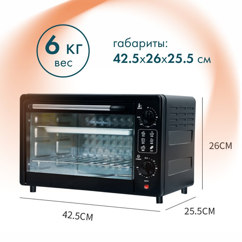 Купить Мини-печь, нержавеющая сталь, трехуровневая, 22 л, черный цвет