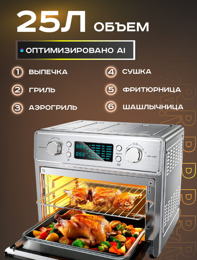 Электропечь Pioneer AI MO5201G 25 л c функцией АЭРОГРИЛЯ, ШАШЛЫЧНИЦЫ, ФРИТЮРНИЦЫ, 24 программы, 1800 Вт интересное: