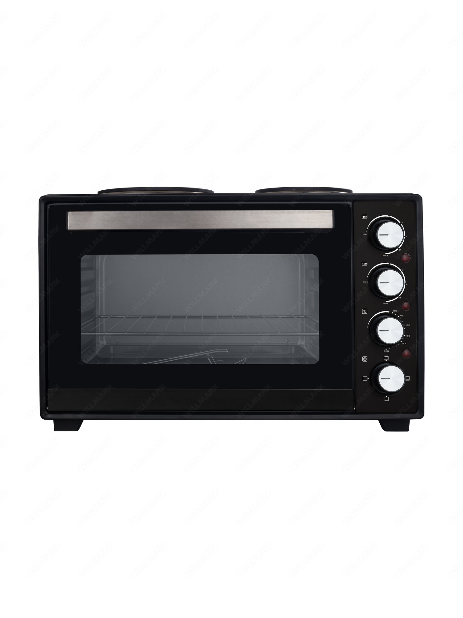 Купить Мини-печь WILLMARK WHO-451BL (40л,2 чугун. конф.1000+750Вт, лампа,4 линейных ТЭНа, черн.)
