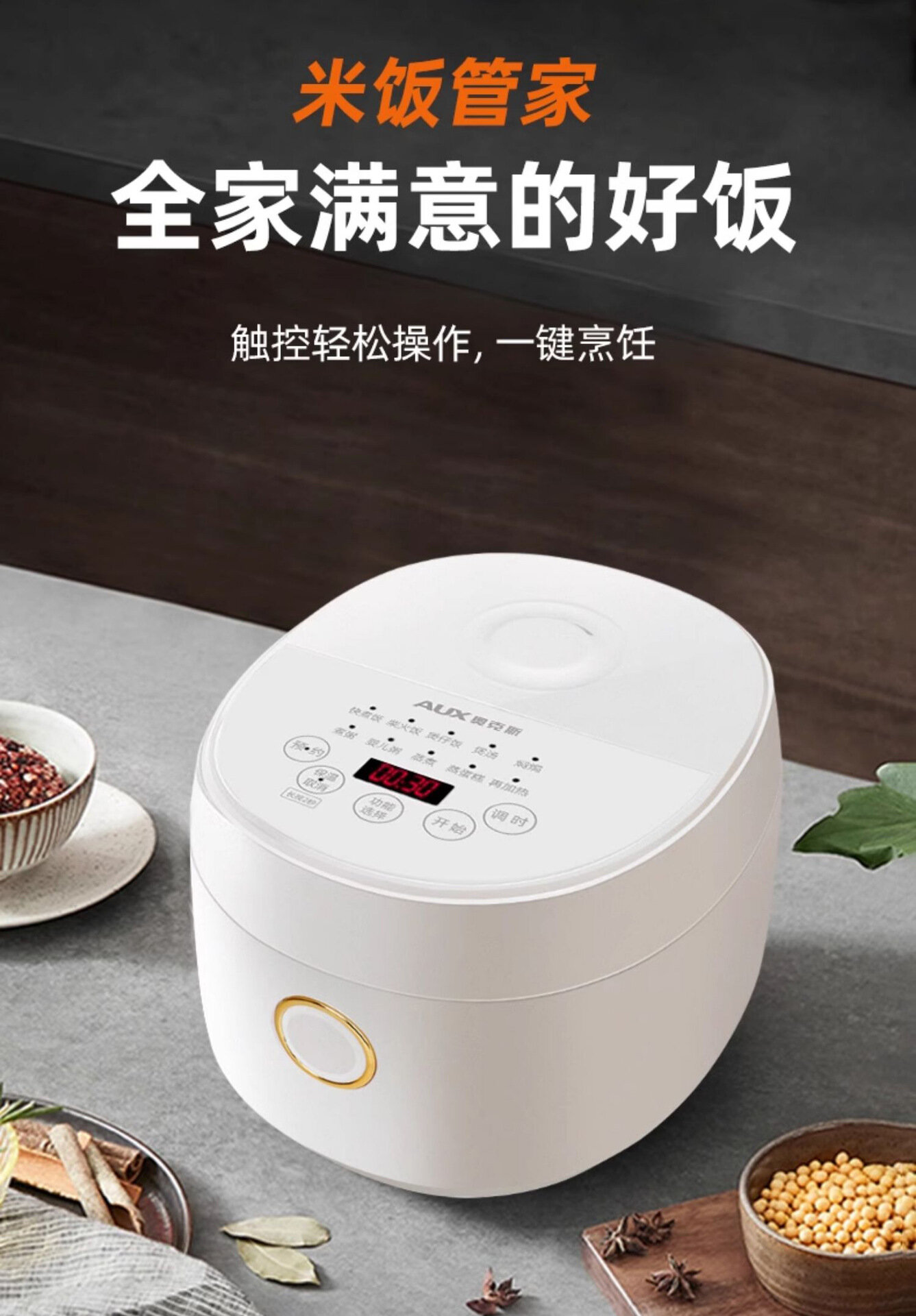 Рисоварка AUX Oaks, 5л, дубовый дизайн, с ЖК-дисплеем, с функцией записи на прием