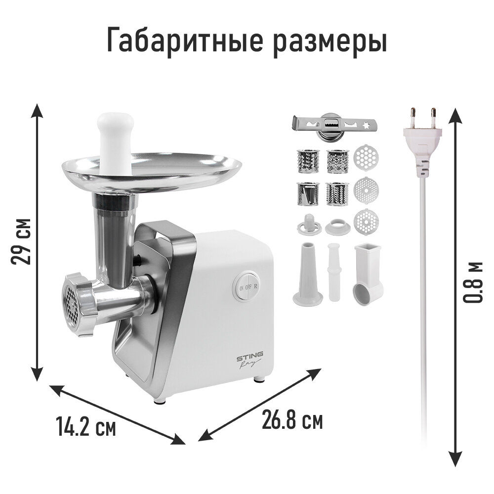 Мясорубка STINGRAY ST-MG2501C белый/матовый хром