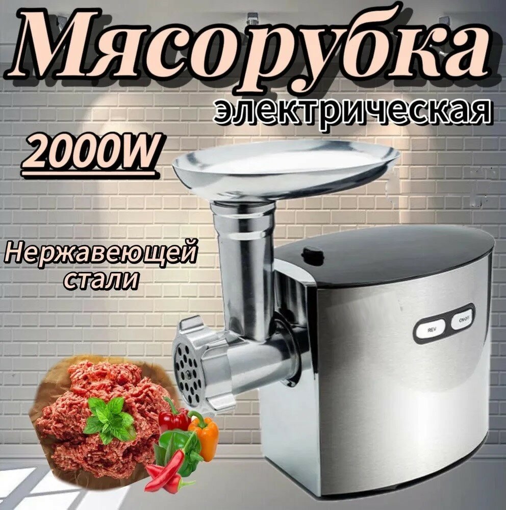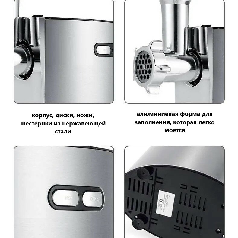 Мясорубка электрическая 2000Вт / Алюминиевая форма/ 3 диска/ Реверс/ Медный двигатель с низким уровнем шума Mi-07-G091 интересное: