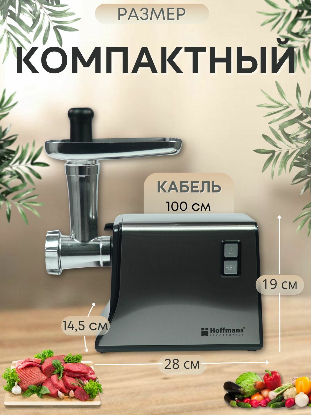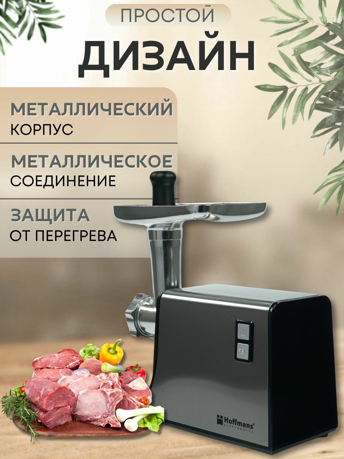 Мясорубка Hoffmans, 5 насадок , 2800Вт, черная/хромированная интересное:
