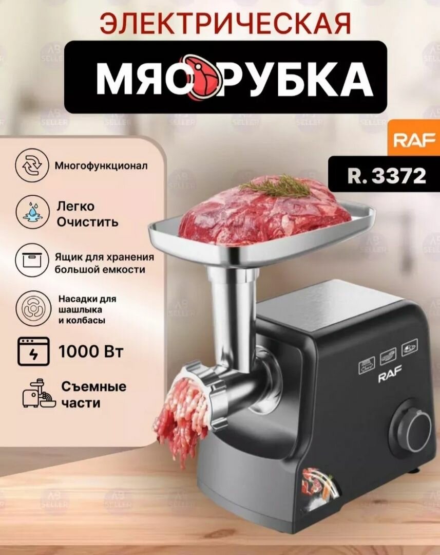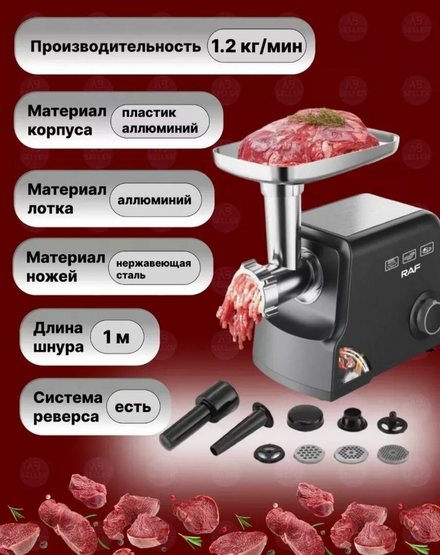 Электрическая мясорубка с насадками, мощностью 1000Вт, производительностью 1.5 кг в минуту интересное: