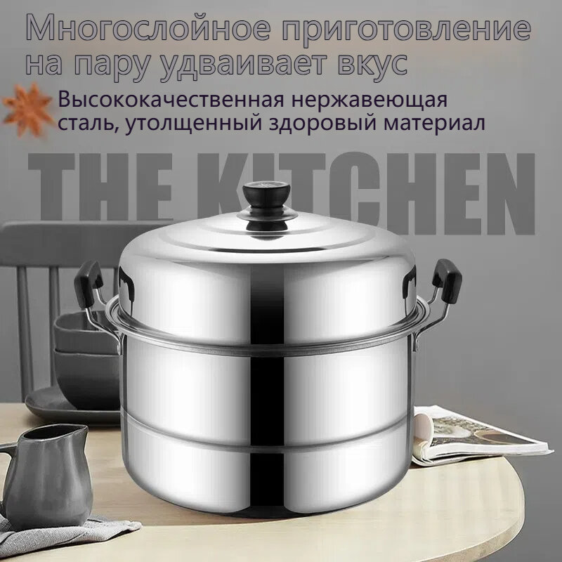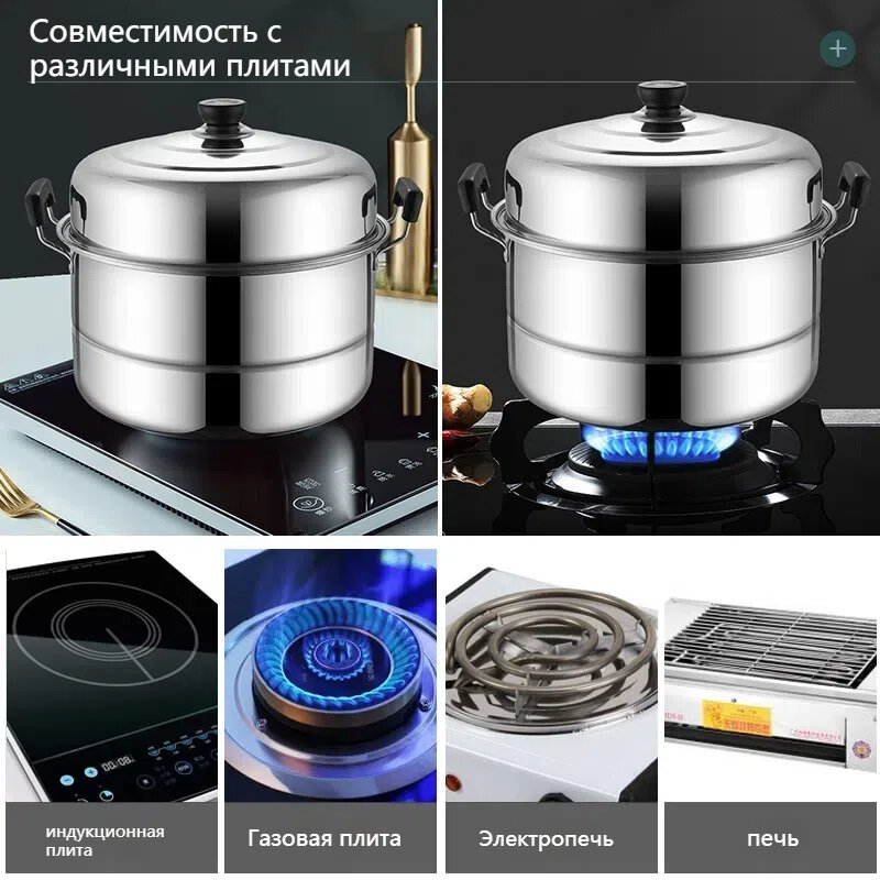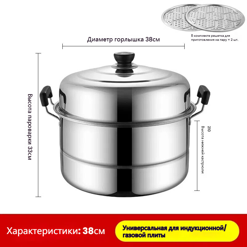 Кастрюля, нержавеющая сталь, двухслойная, 2 яруса, автоприготовление