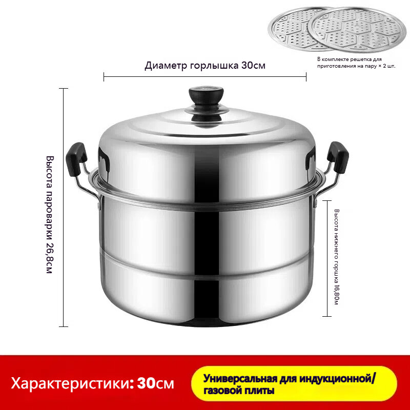Двухслойная кастрюля, нержавеющая сталь, автоприготовление, 2 яруса, звуковая сигнализация