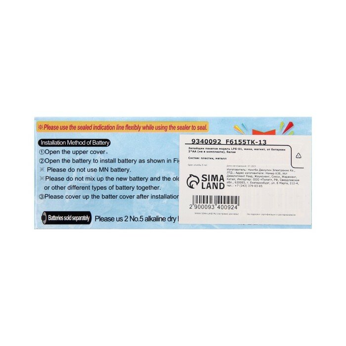 Запайщик пакетов LPS-01, мини, магнит, от батареек 2*АА (не в комплекте), белый интересное: