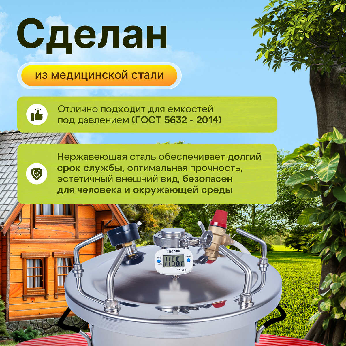 Автоклав Helicon Булат на 26 литров для домашних заготовок на пару и на воде, консервирование, приготовление