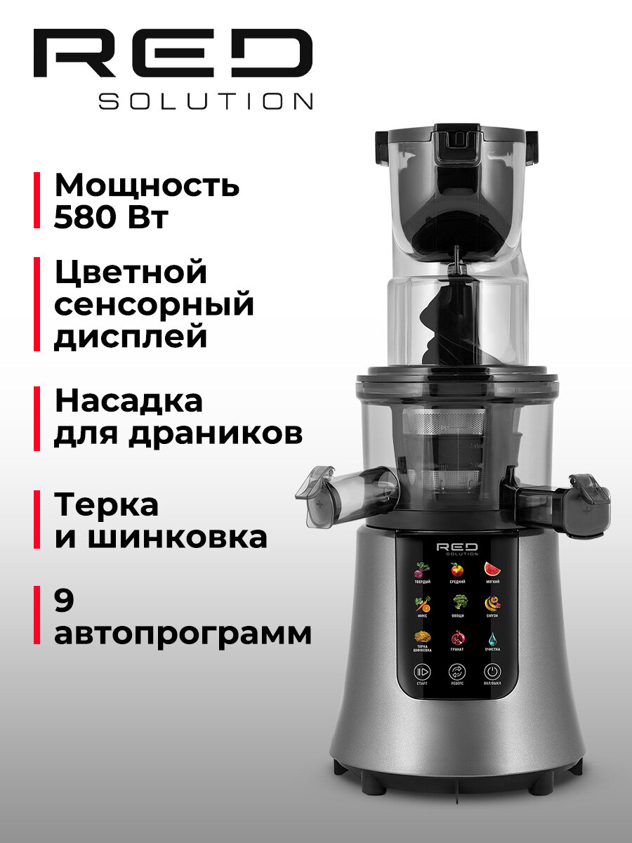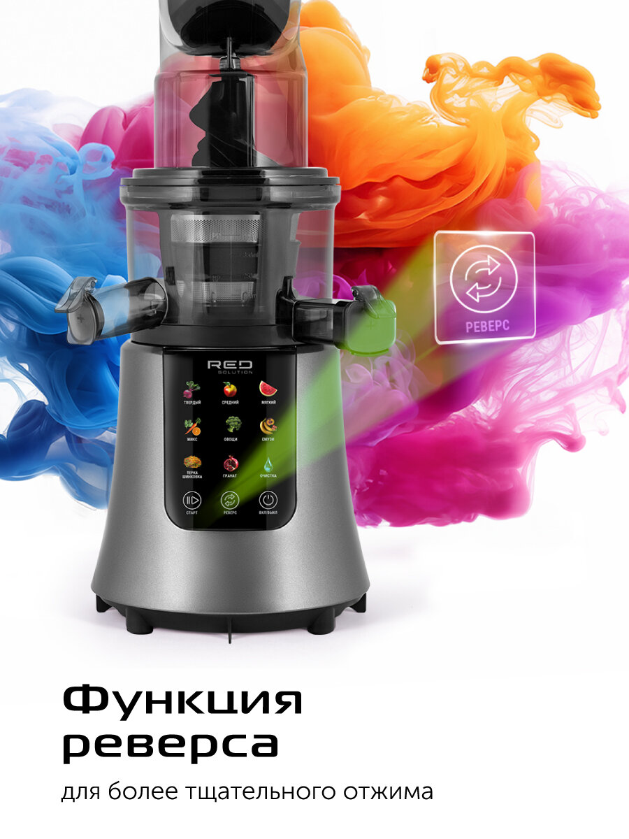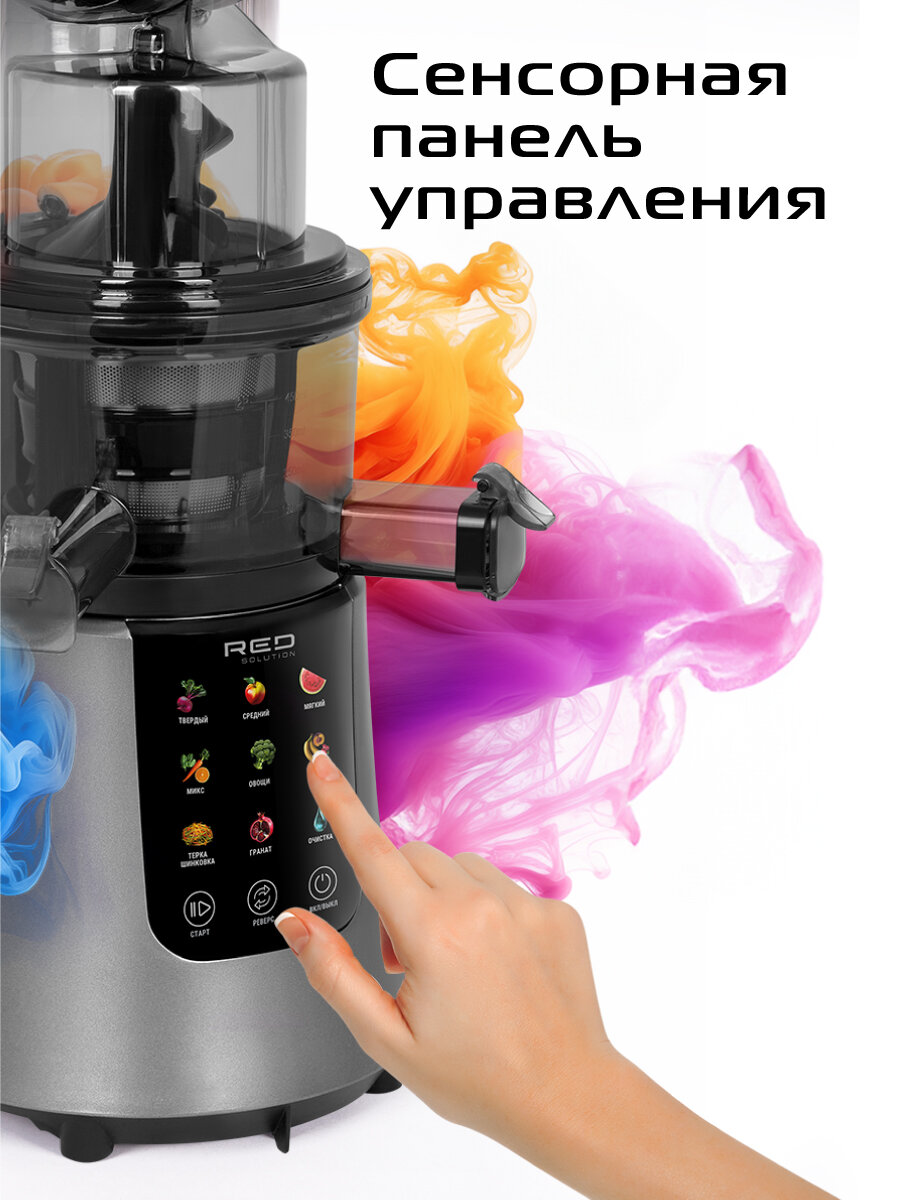 Соковыжималка шнековая RED SOLUTION COLOR SENSE J950, серая, вертикальная, сенсорное управление интересное: