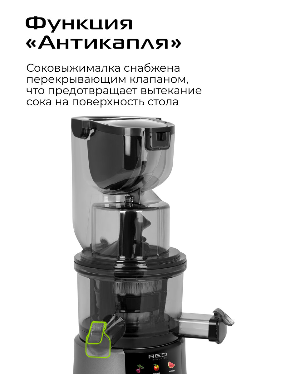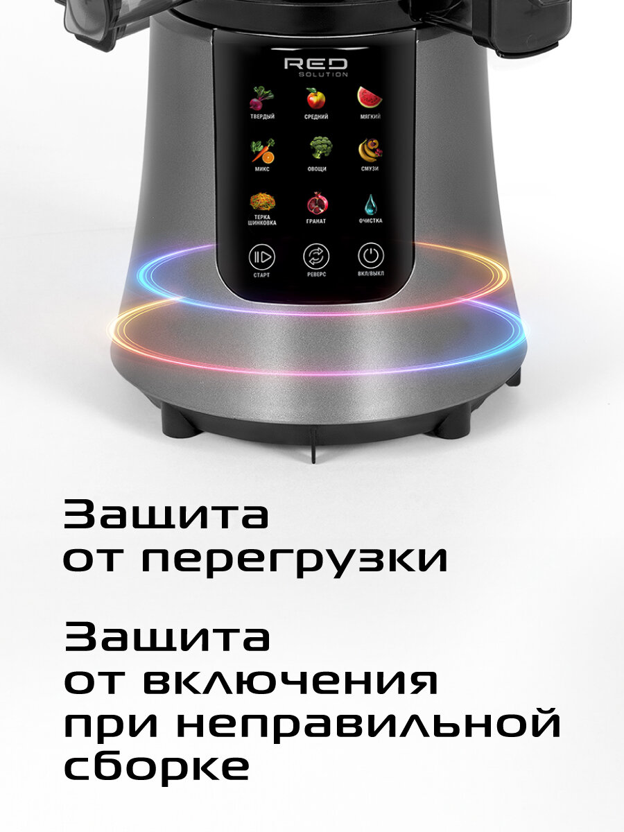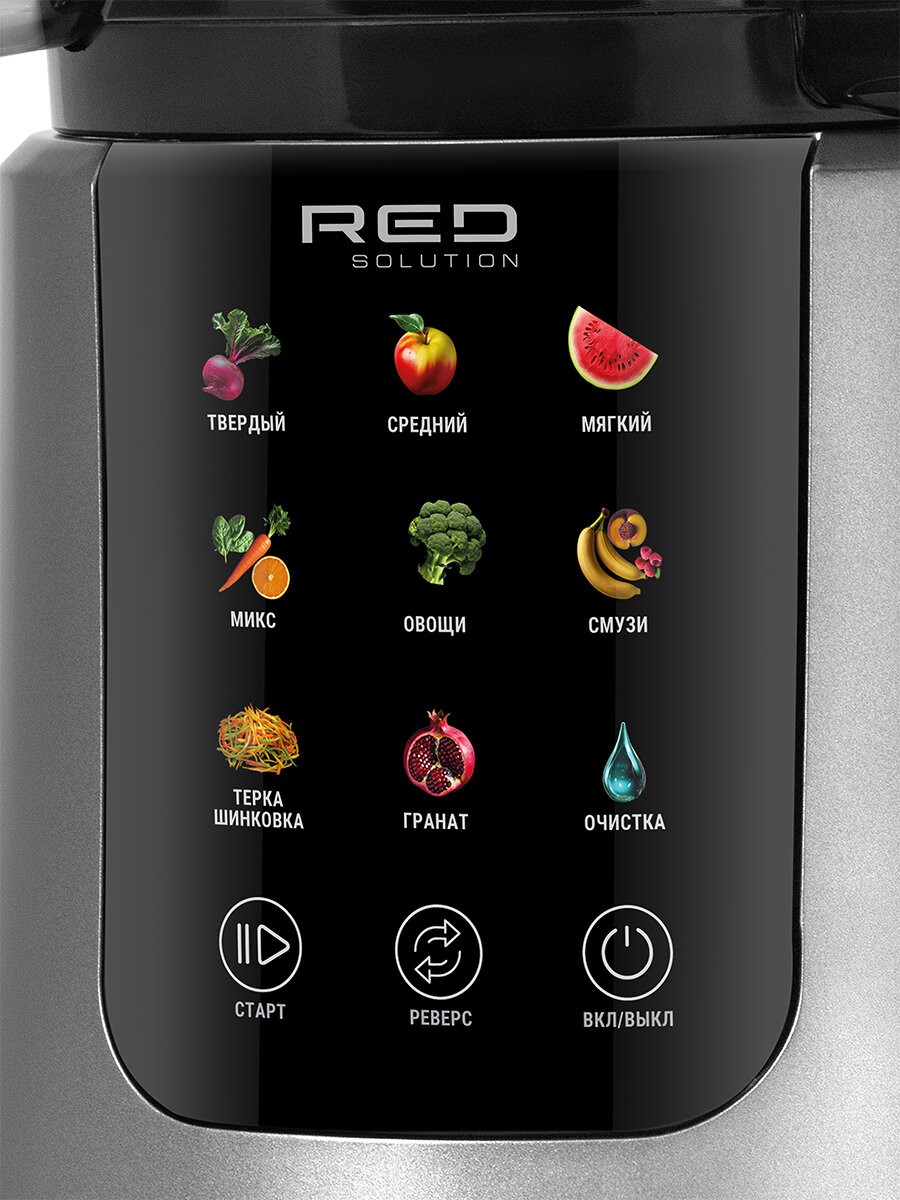 Соковыжималка шнековая RED SOLUTION COLOR SENSE J950, серая, вертикальная, сенсорное управление интересное: