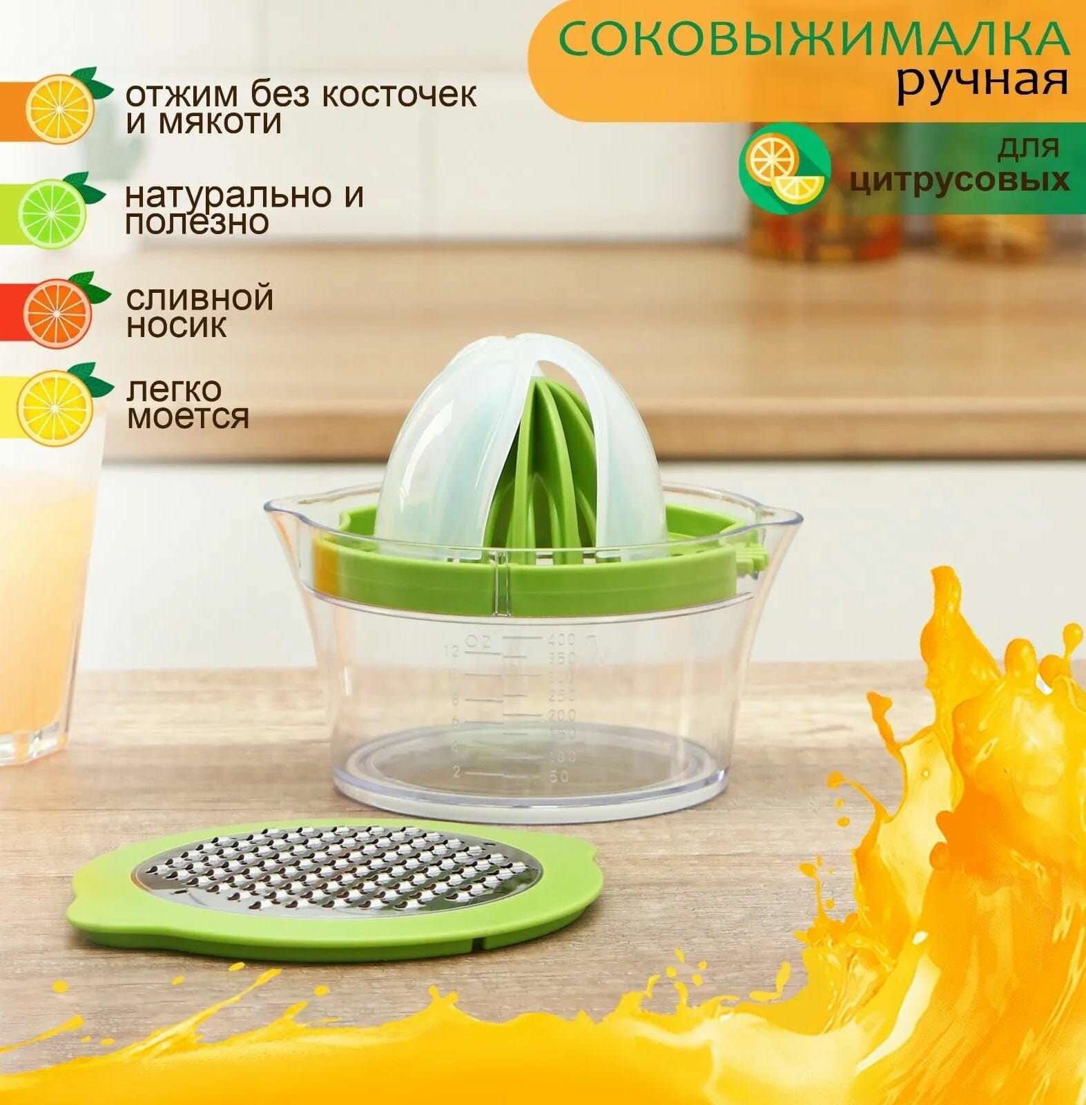 Соковыжималка механическая с контейнером и насадкой цвет зелёный 4в1 интересное: