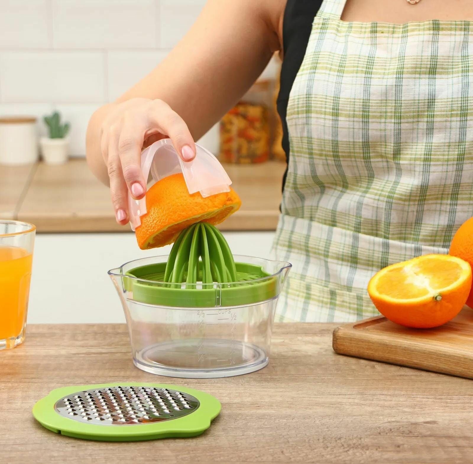 Купить Соковыжималка механическая с контейнером и насадкой цвет зелёный 4в1