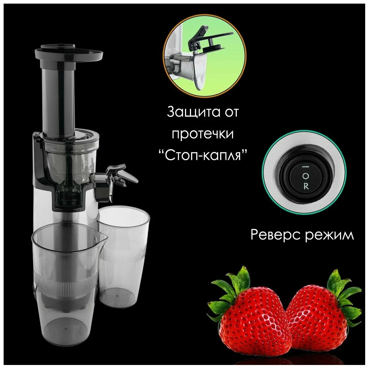 Соковыжималка шнековая Clever&Clean Twist Juicer Ice. Для цитрусовых, для овощей и фруктов. С реверсом. Цвет белый интересное: