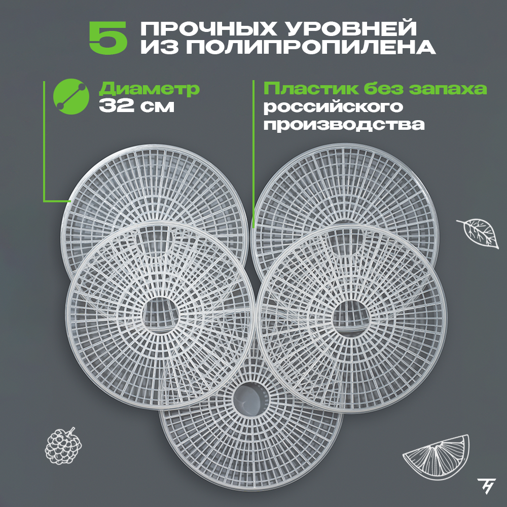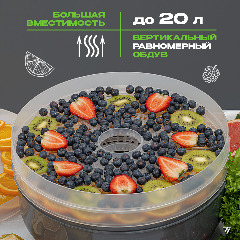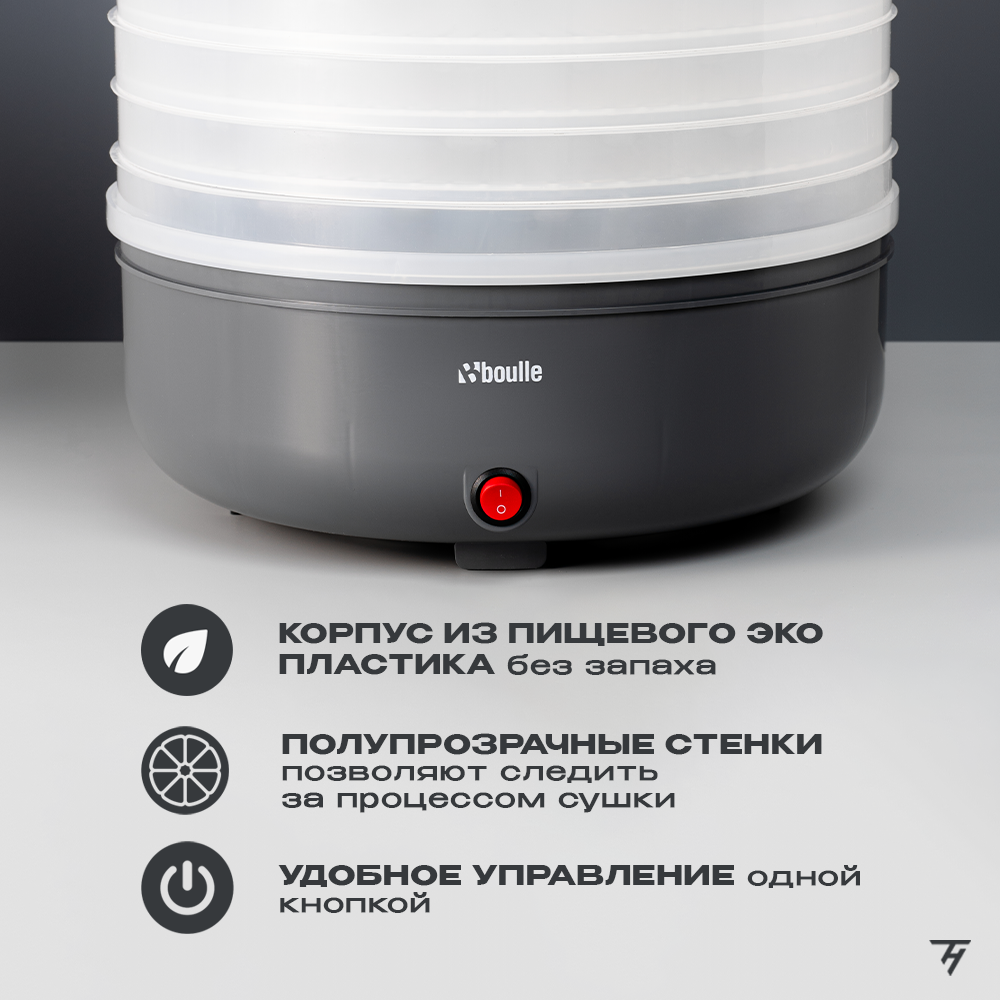 Сушилка для овощей и фруктов электрическая, дегидратор ВOULLE BFD-105B 5 уровней 20 л черный графит интересное: