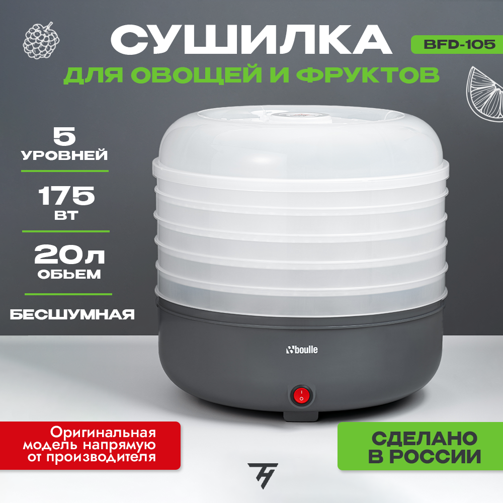 Ниже Вы можете прочитать отзывы на Сушилка для овощей и фруктов электрическая, дегидратор ВOULLE BFD-105B 5 уровней 20 л черный графит, ознакомится с подробными характеристиками, посмотреть интересные обзоры и фотографии на Сушилка для овощей и фруктов электрическая, дегидратор ВOULLE BFD-105B 5 уровней 20 л черный графит.