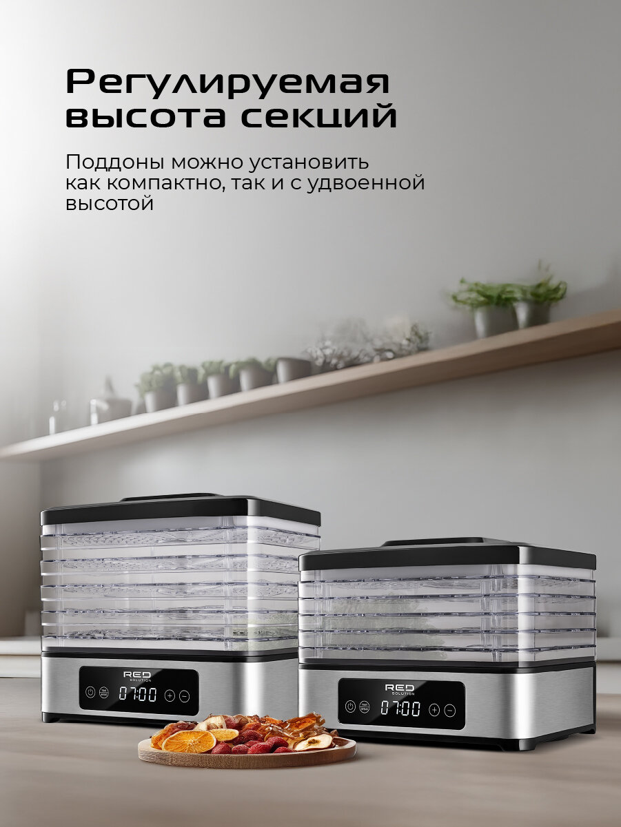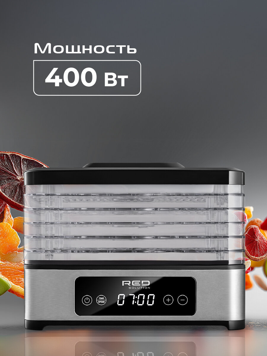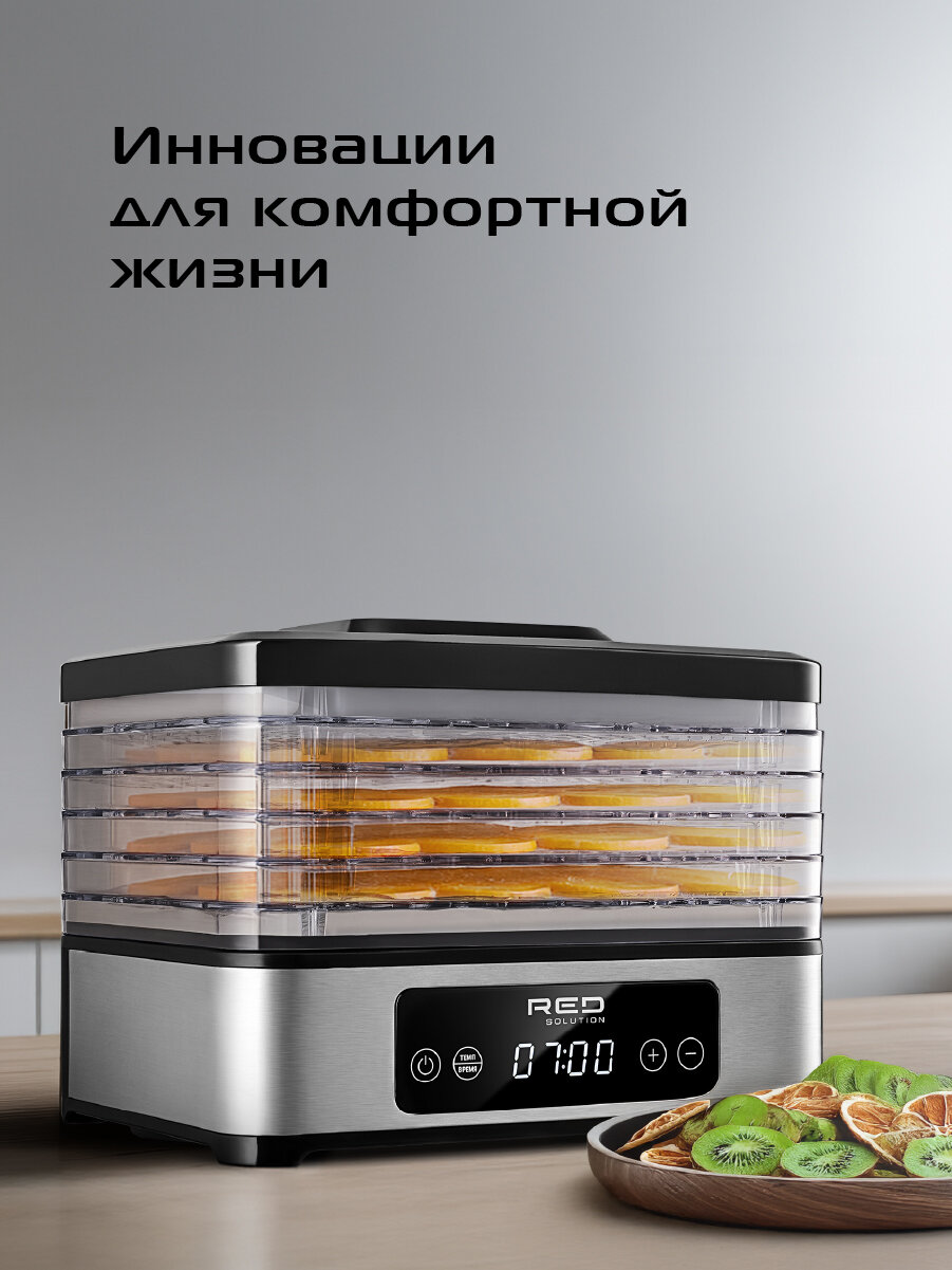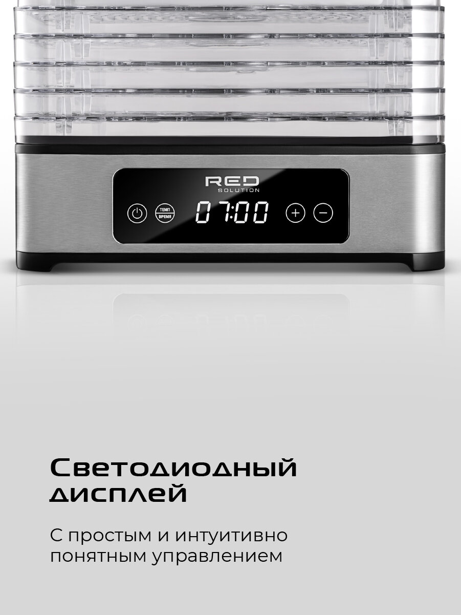 Сушилка для овощей и фруктов RED SOLUTION DD011V, 7 поддонов, серая интересное:
