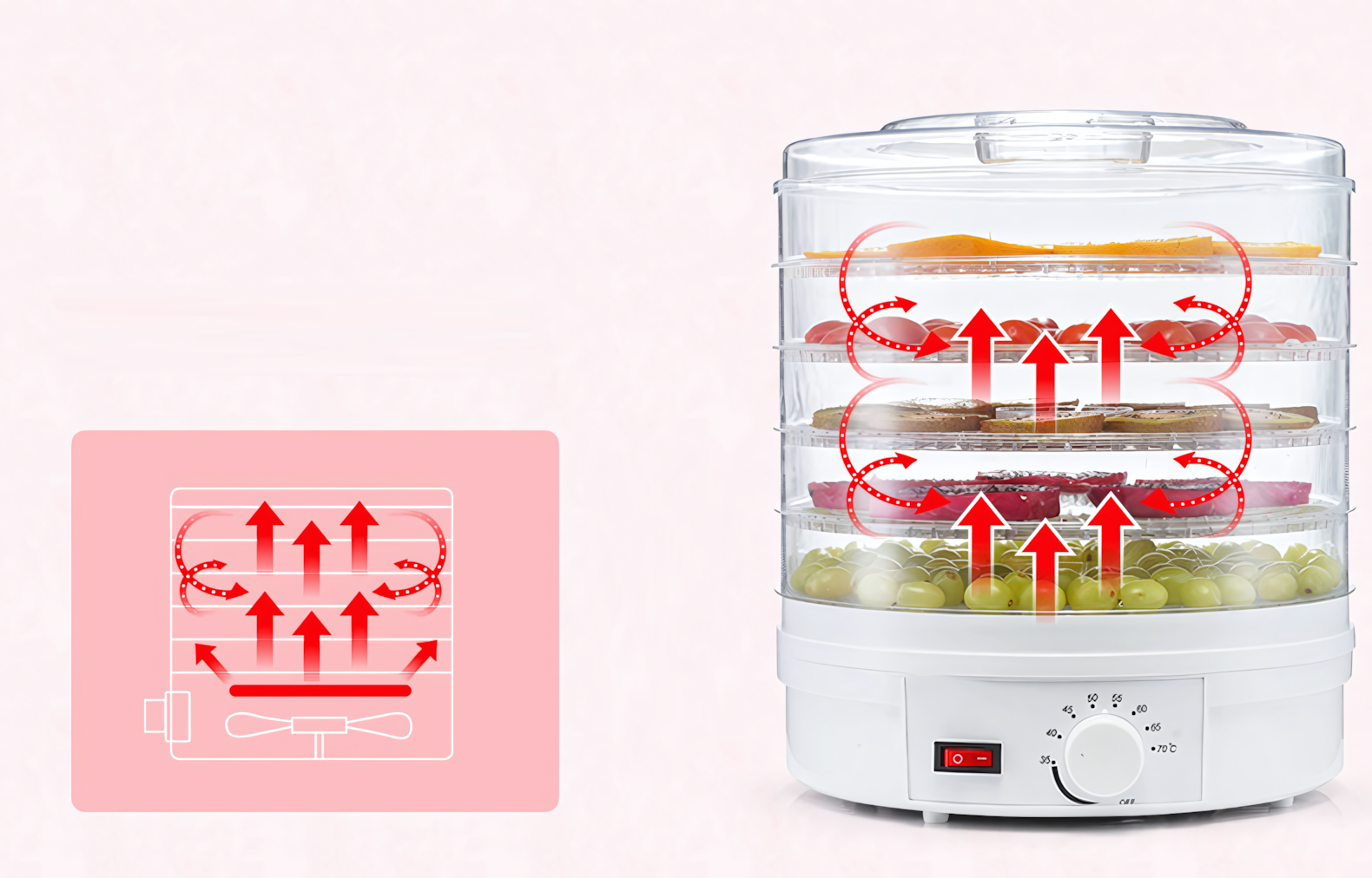 Сушилка для овощей и фруктов SX770, конвективная, 350 Вт, 5 поддонов, версия JP