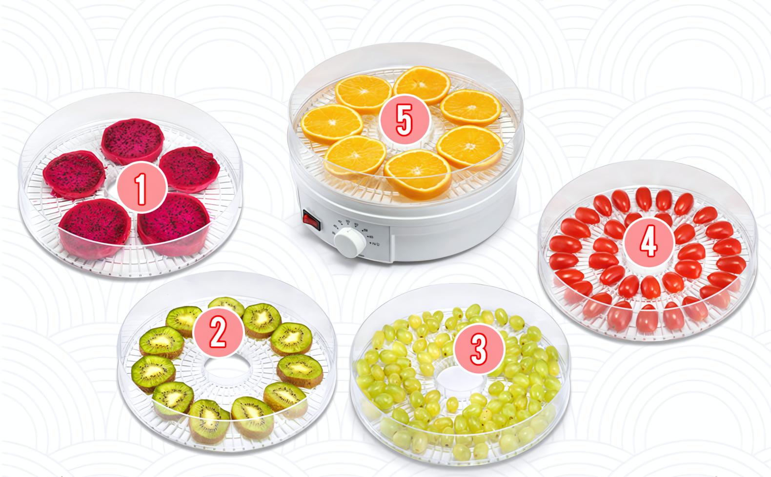 Сушилка для овощей и фруктов SX770, конвективная, 350 Вт, 5 поддонов, версия CN