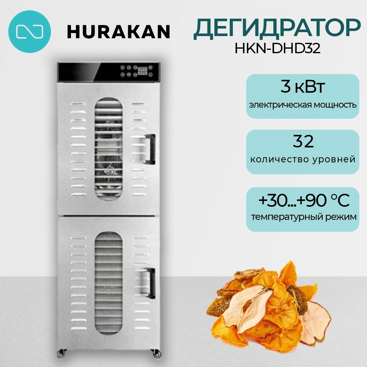 Дегидратор сушилка профессиональный Hurakan HKN-DHD32, 32 уровня, 2 камеры, 3 кВт. интересное: