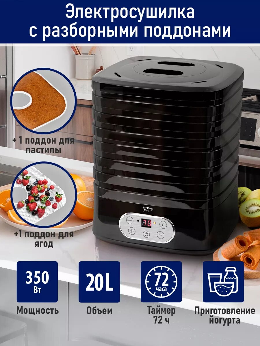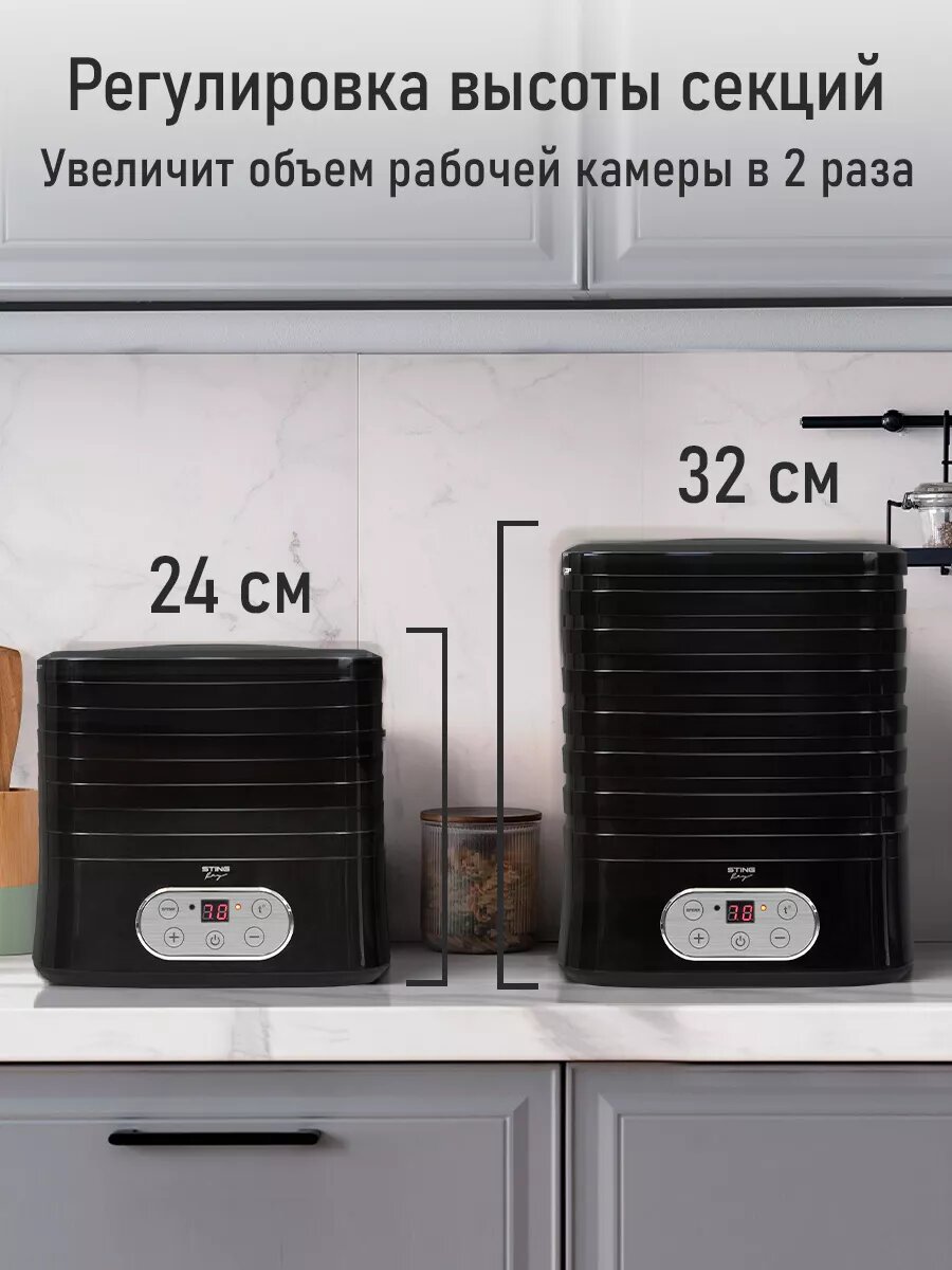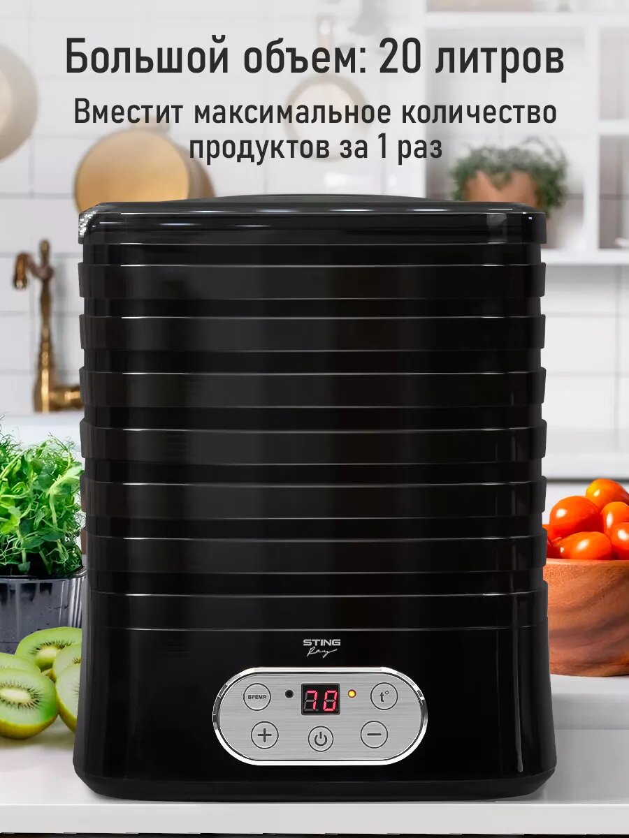 Дегидратор сушилка для овощей электросушилка STINGRAY ST-FD717B 9 поддонов (7 основных + 1 для пастилы + 1 для ягод) черный интересное: