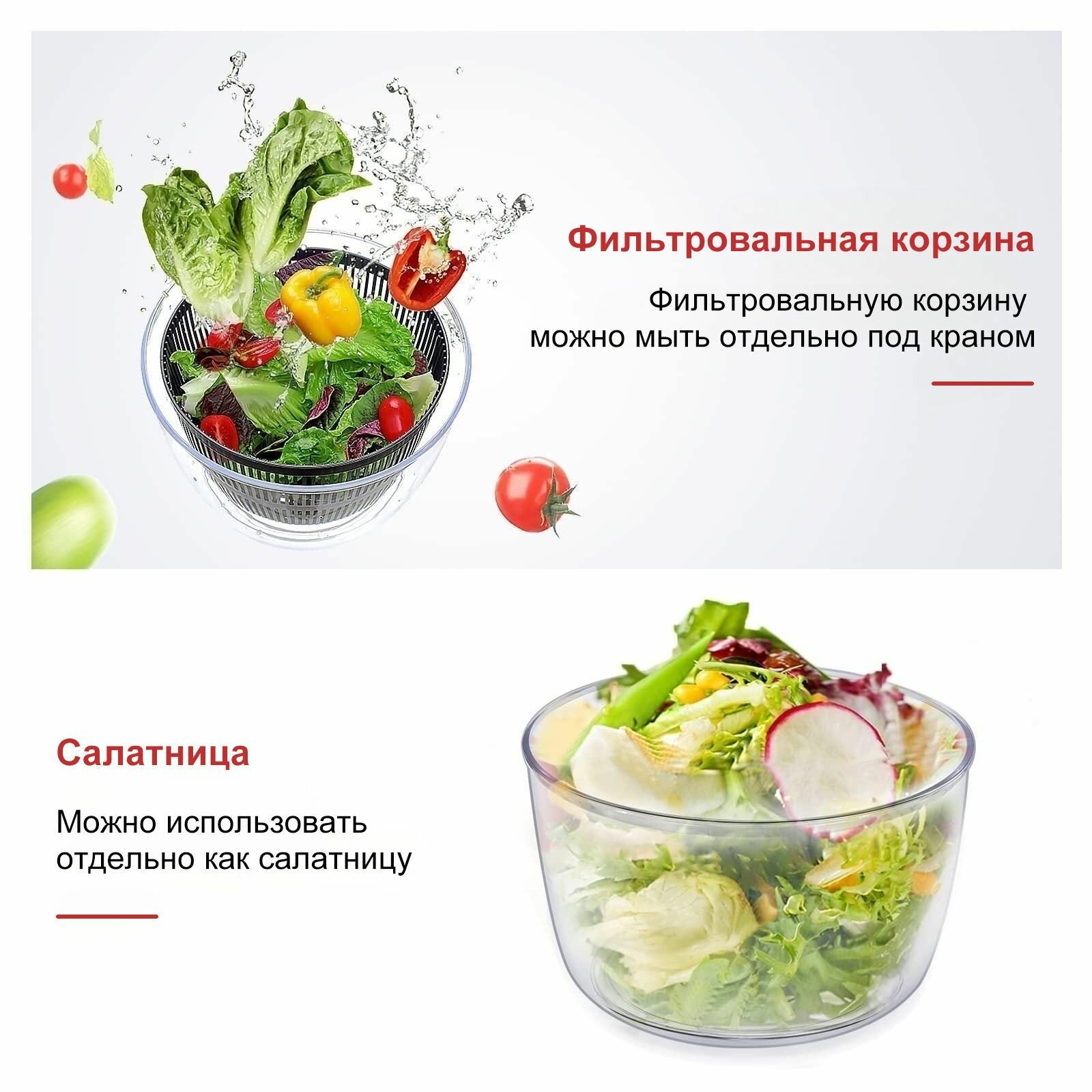 Сушилка овощей и фруктов , Центрифуга салата, Функции очистка и сушка , 5л интересное: