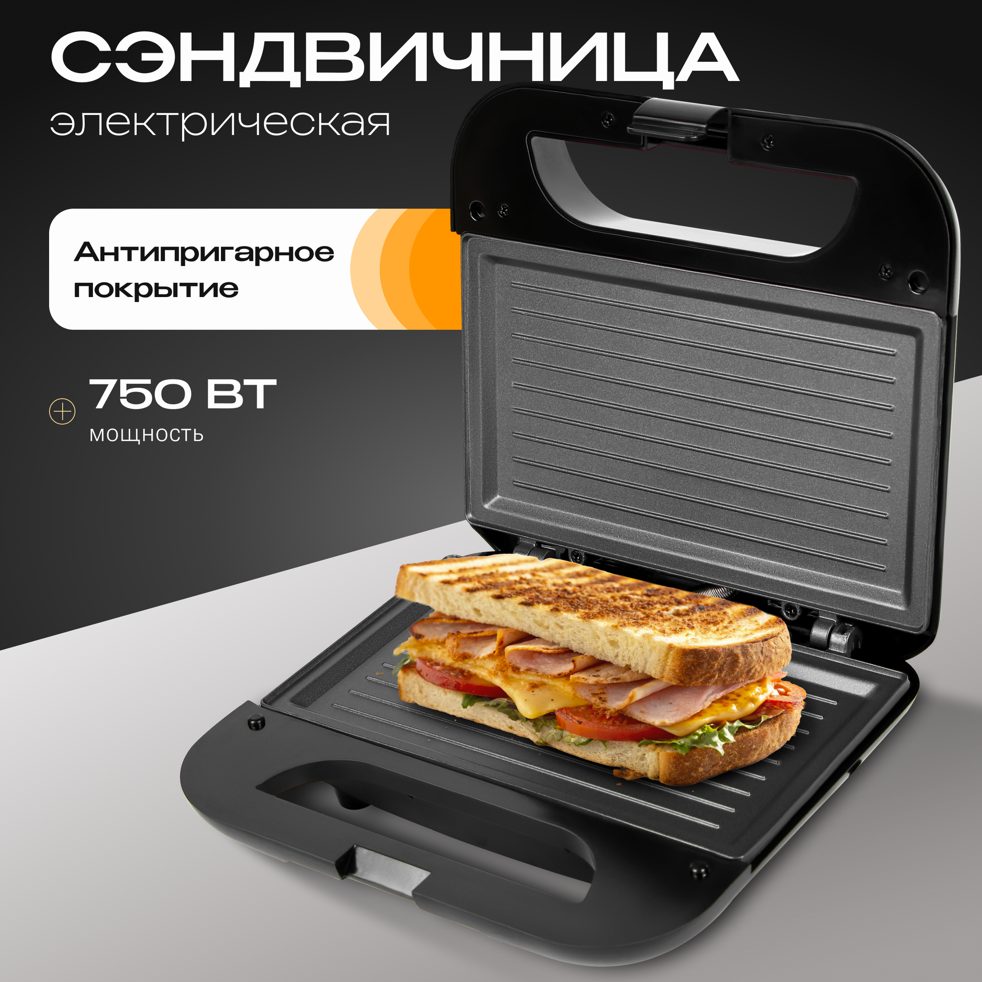 Электрическая сэндвичница, панель гриль, мощность 750 Вт, черная интересное: