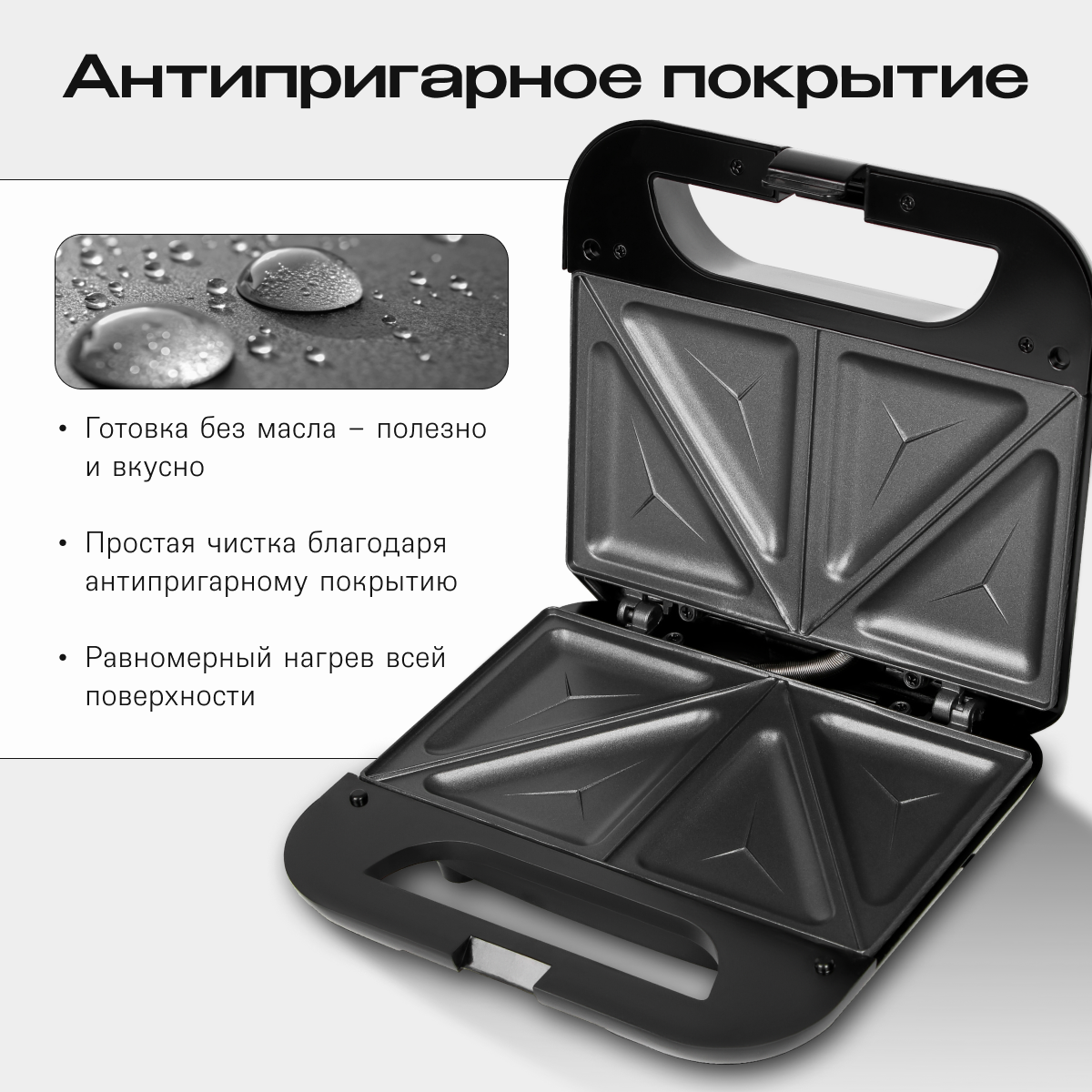Электрическая сэндвичница, панель сэндвичи, мощность 750 Вт, черная интересное: