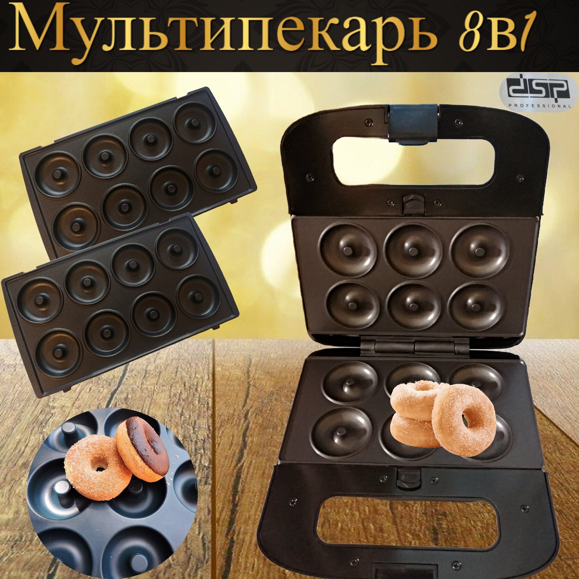Электрический Мультипекарь 8 в 1 с антипригарным покрытием 1500W / Вафельница со сменными панелями Гриль Орешница / Пончиковый аппарат и бутербродов