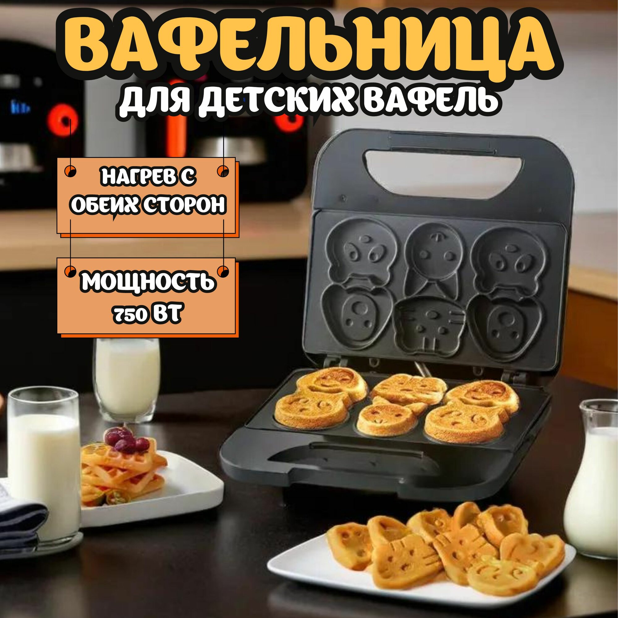 Вафельница для детских вафель 750 Вт, черный интересное: