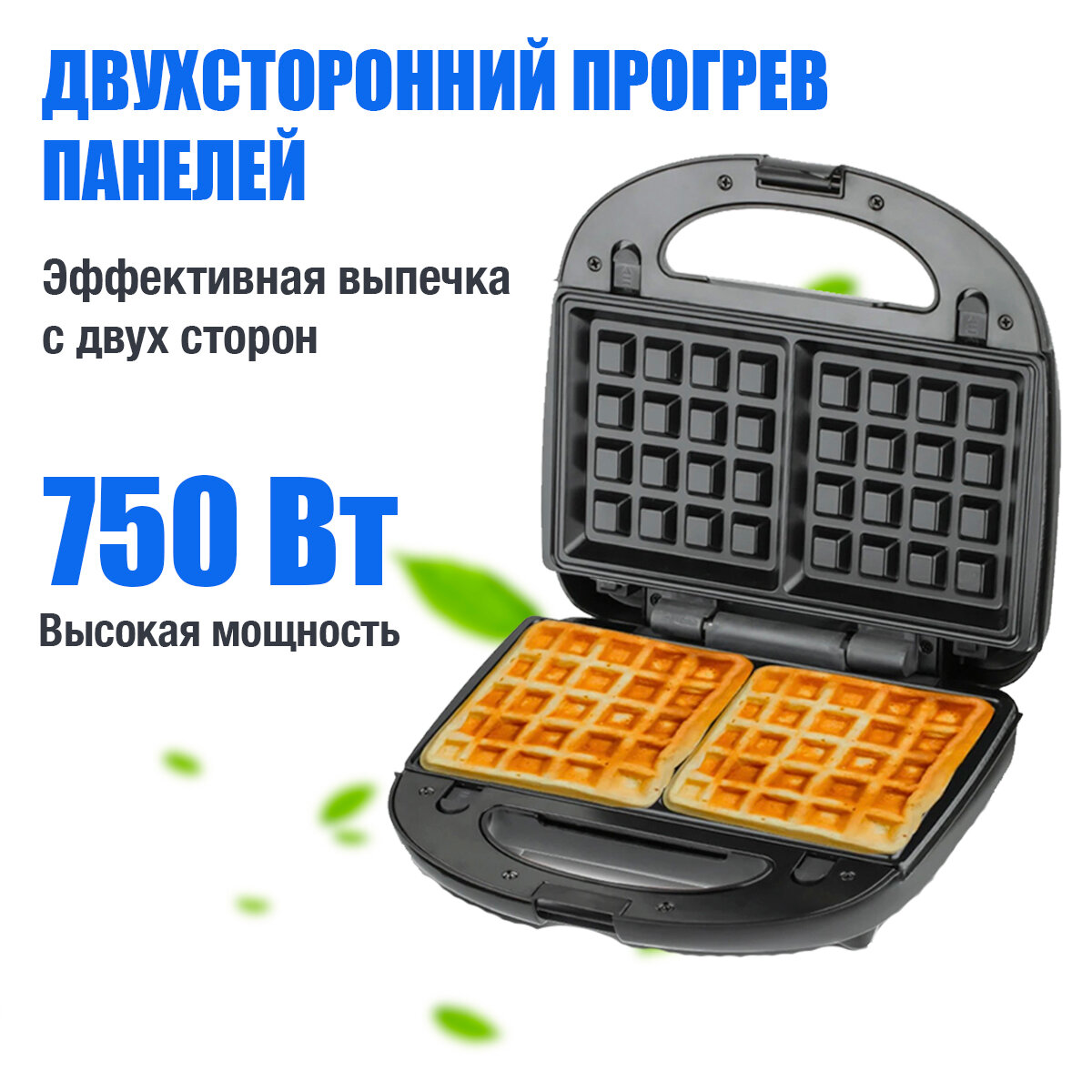 Купить Электрический мультипекарь 7в1, вафельница, сэндвичница, с панелями, 750 Вт, черный