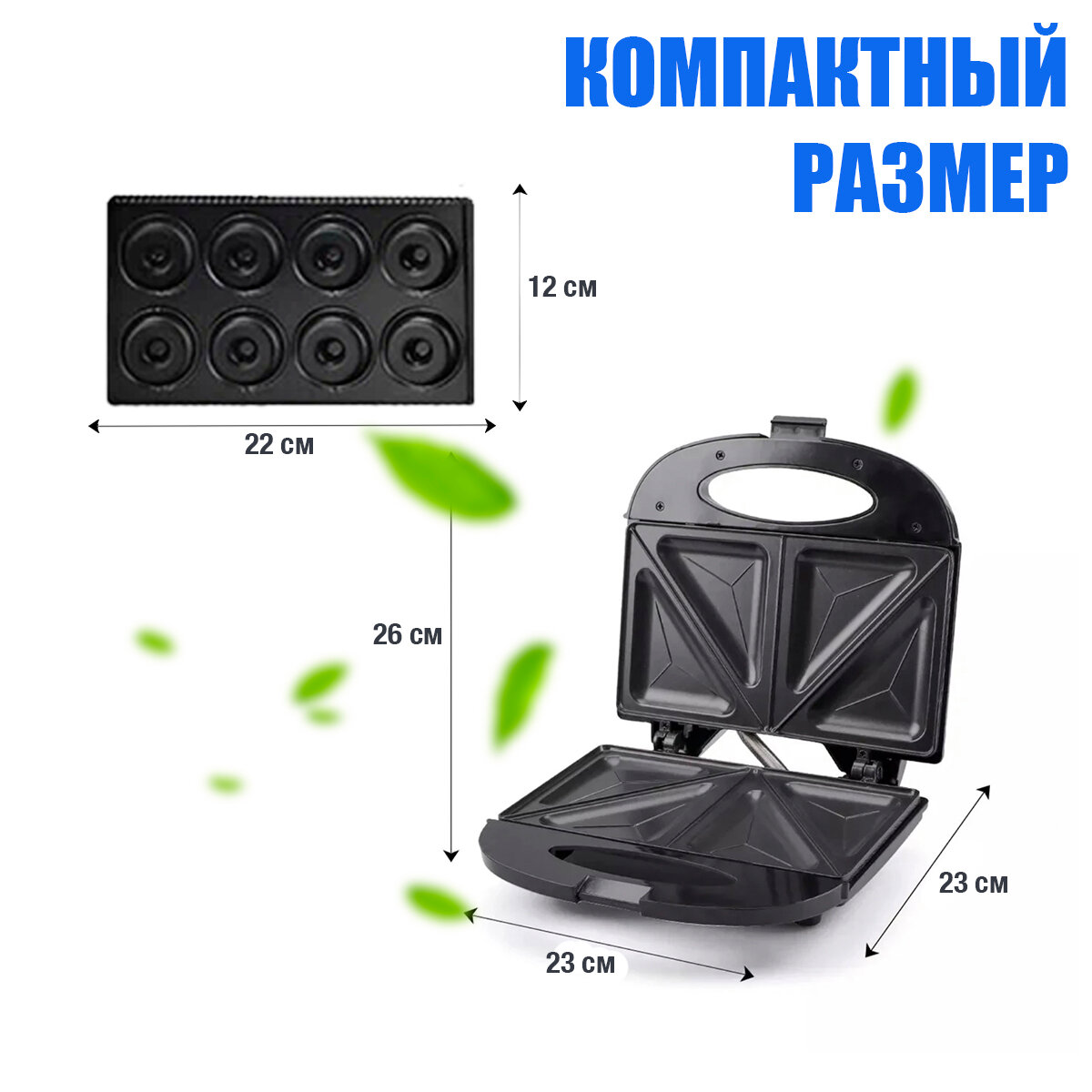 Электрический мультипекарь 7в1, вафельница, сэндвичница, с панелями, 750 Вт, черный интересное: